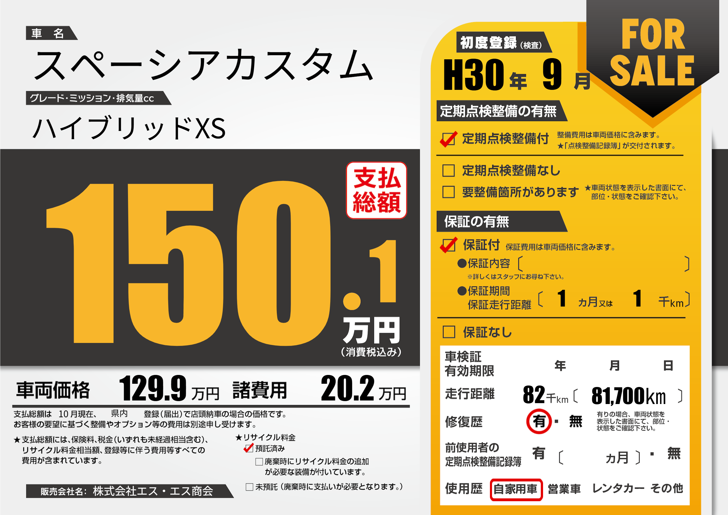 | 初年度登録 | H30年9月 | ||
