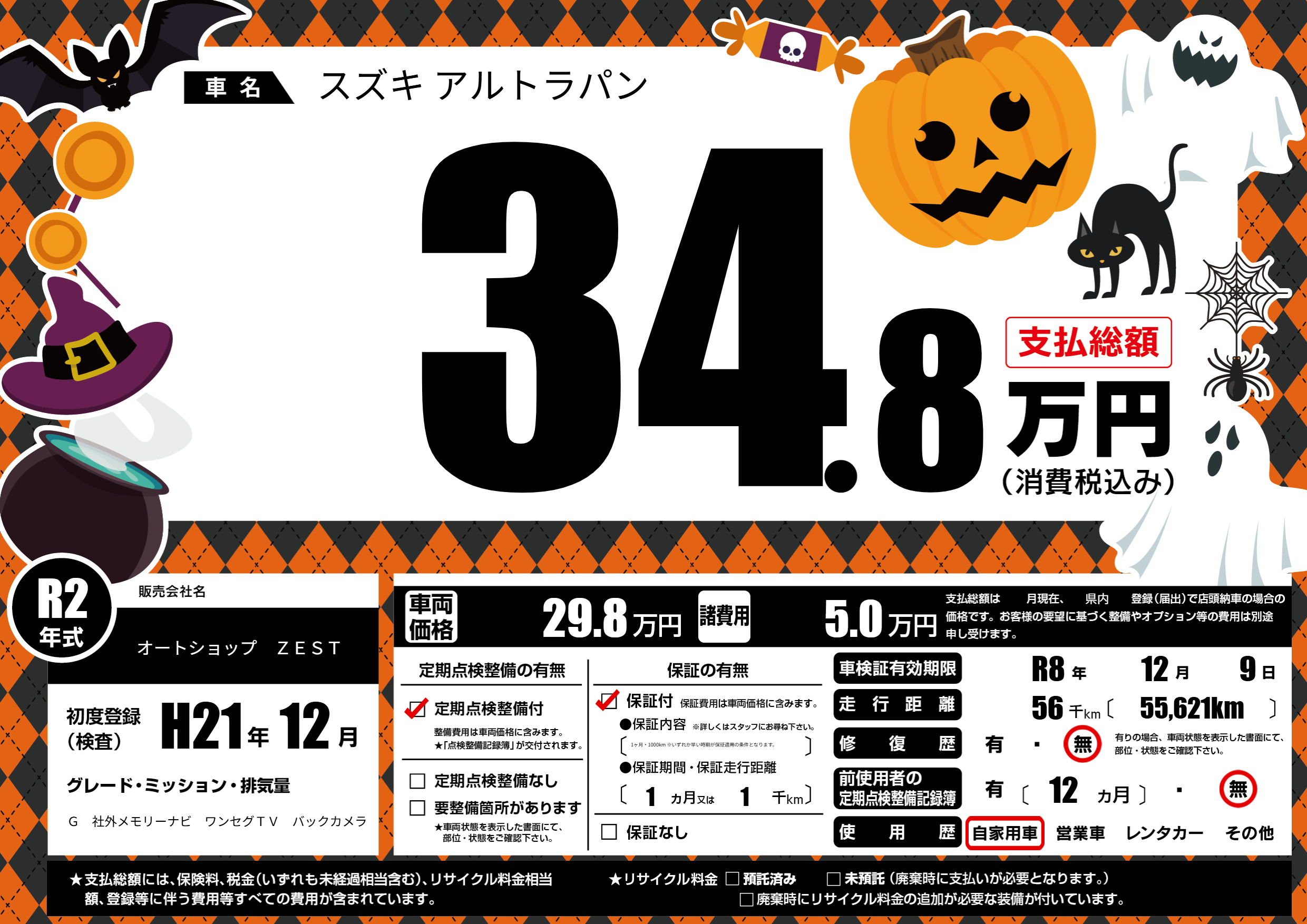 | 走行キロ | 5.6万km | 初年度登録 | H21年12月 |