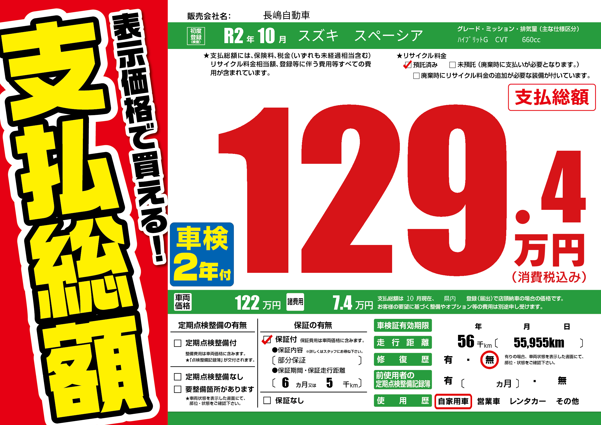 保証付き 保証内容(部分保証) 6ヶ月または(5)千kmまで |