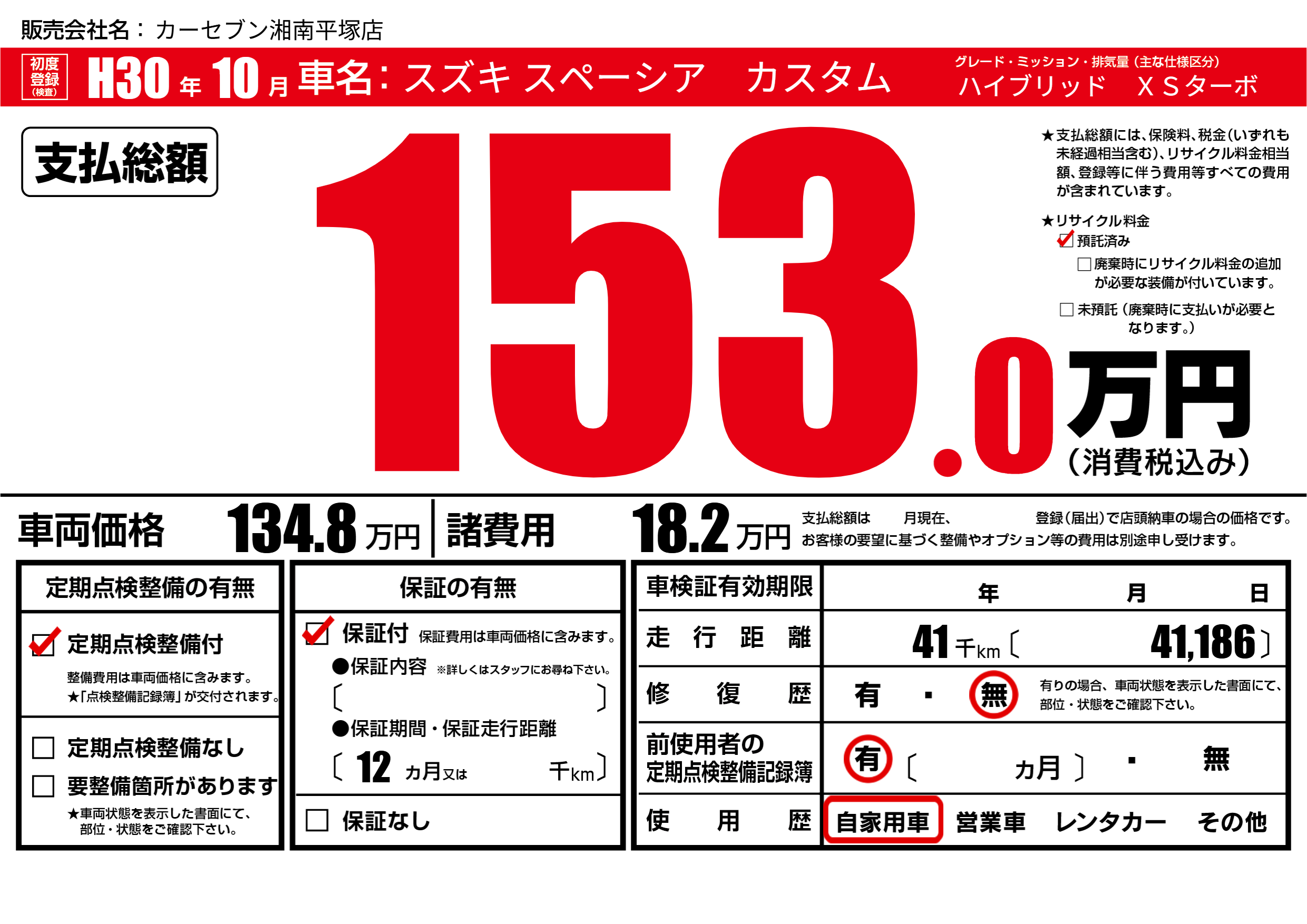 | 初年度登録 | H30年10月 | ||