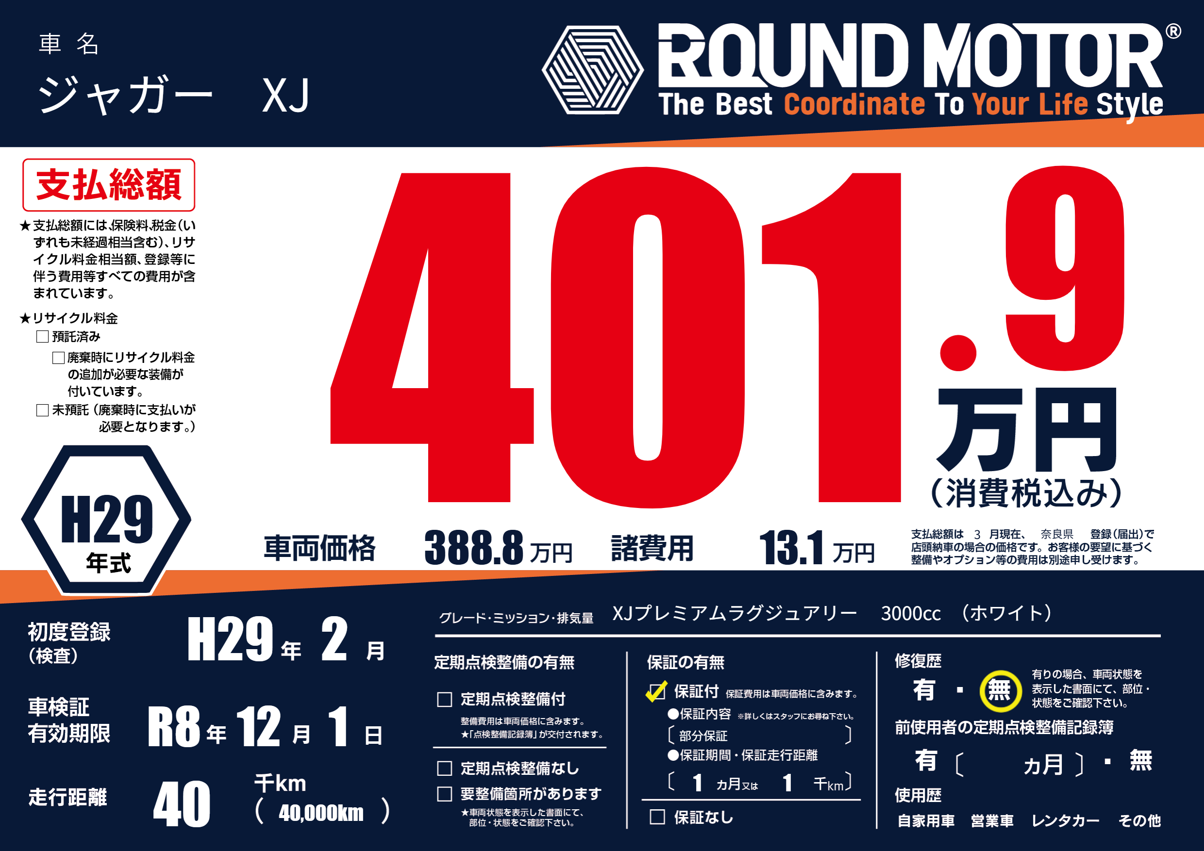 | 車名 | ジャガー XJ | グレード ミッション 排気量 |