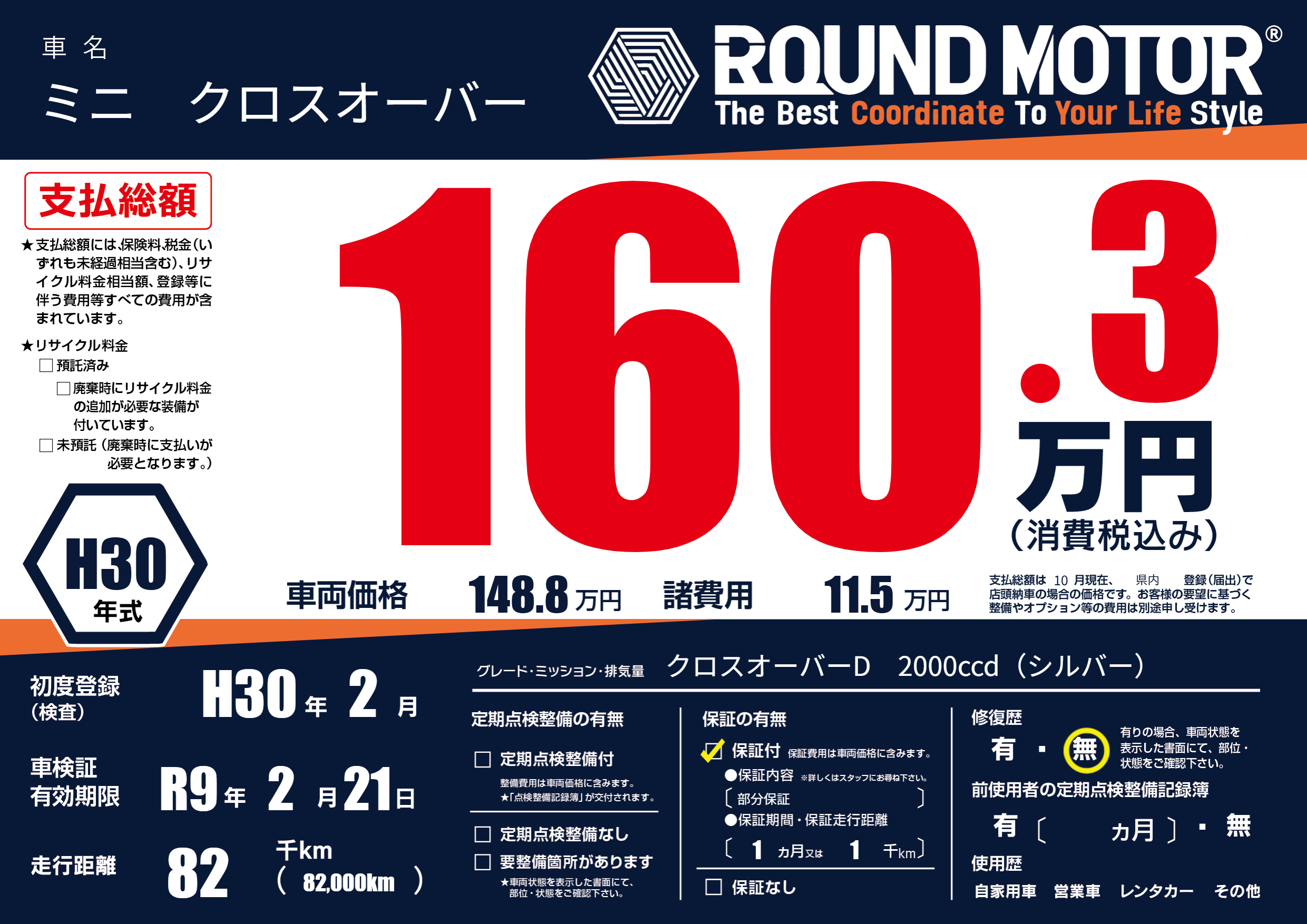 保証付き 保証内容(部分保証) 1ヶ月または(1)千kmまで |