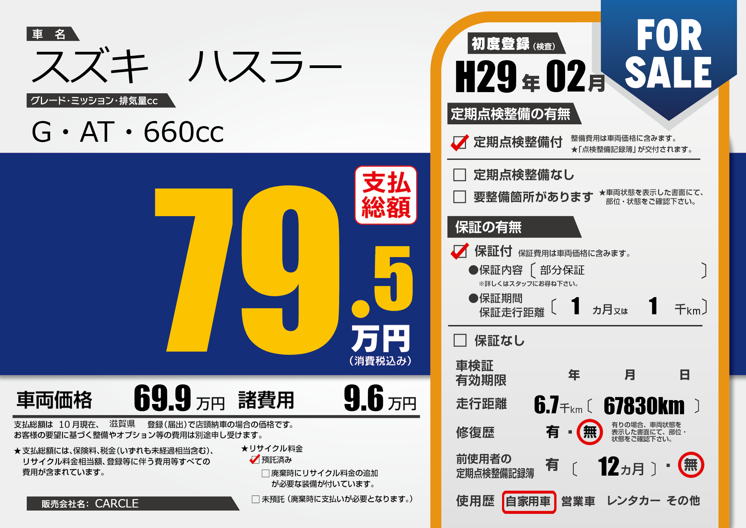| 納車時の 整備費用 |
