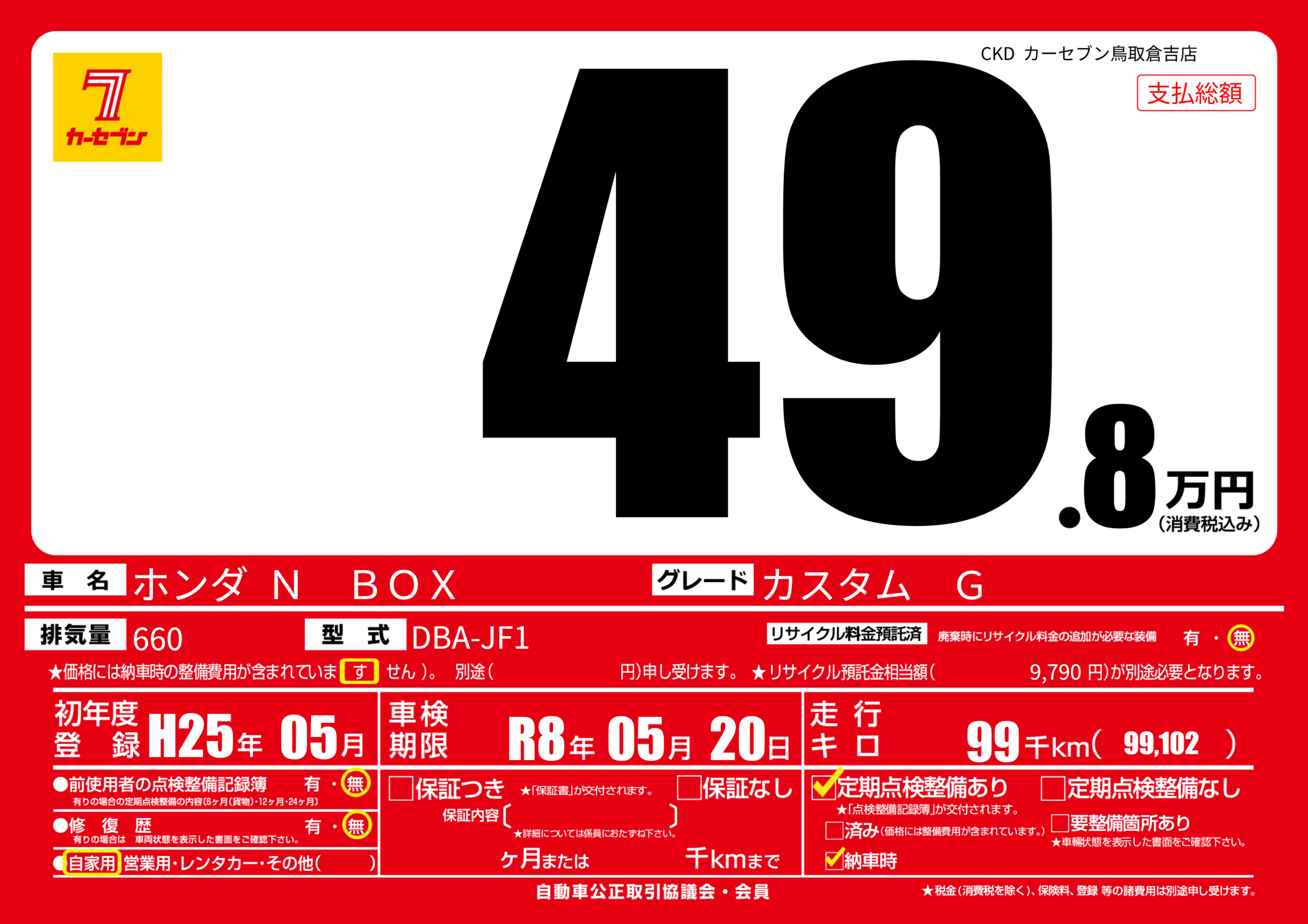 | 定期点検整備 | 定期点検整備あり 納車時あり | ||