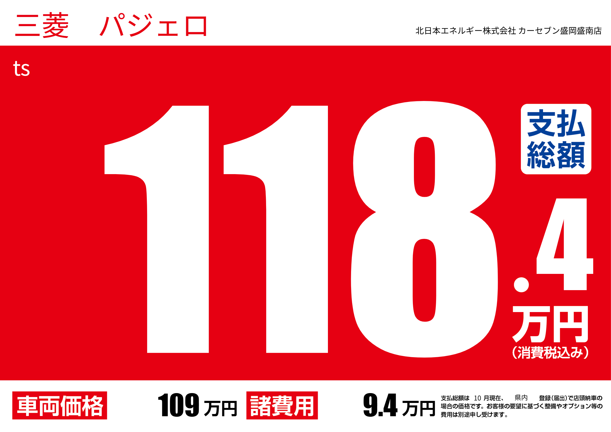 | 車名 | 三菱 パジェロ | グレード ミッション 排気量 |
