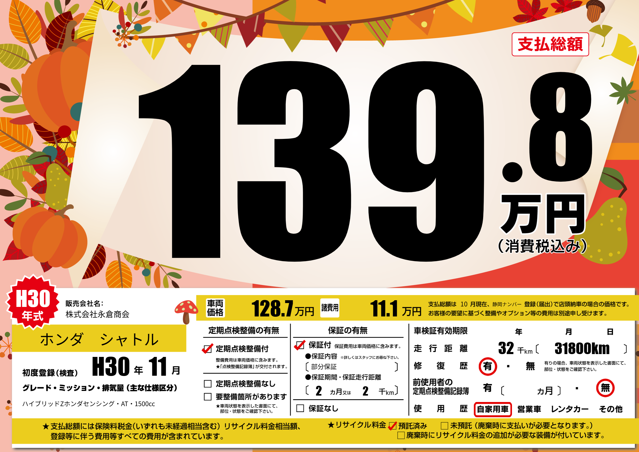 | 初年度登録 | H30年11月 | ||