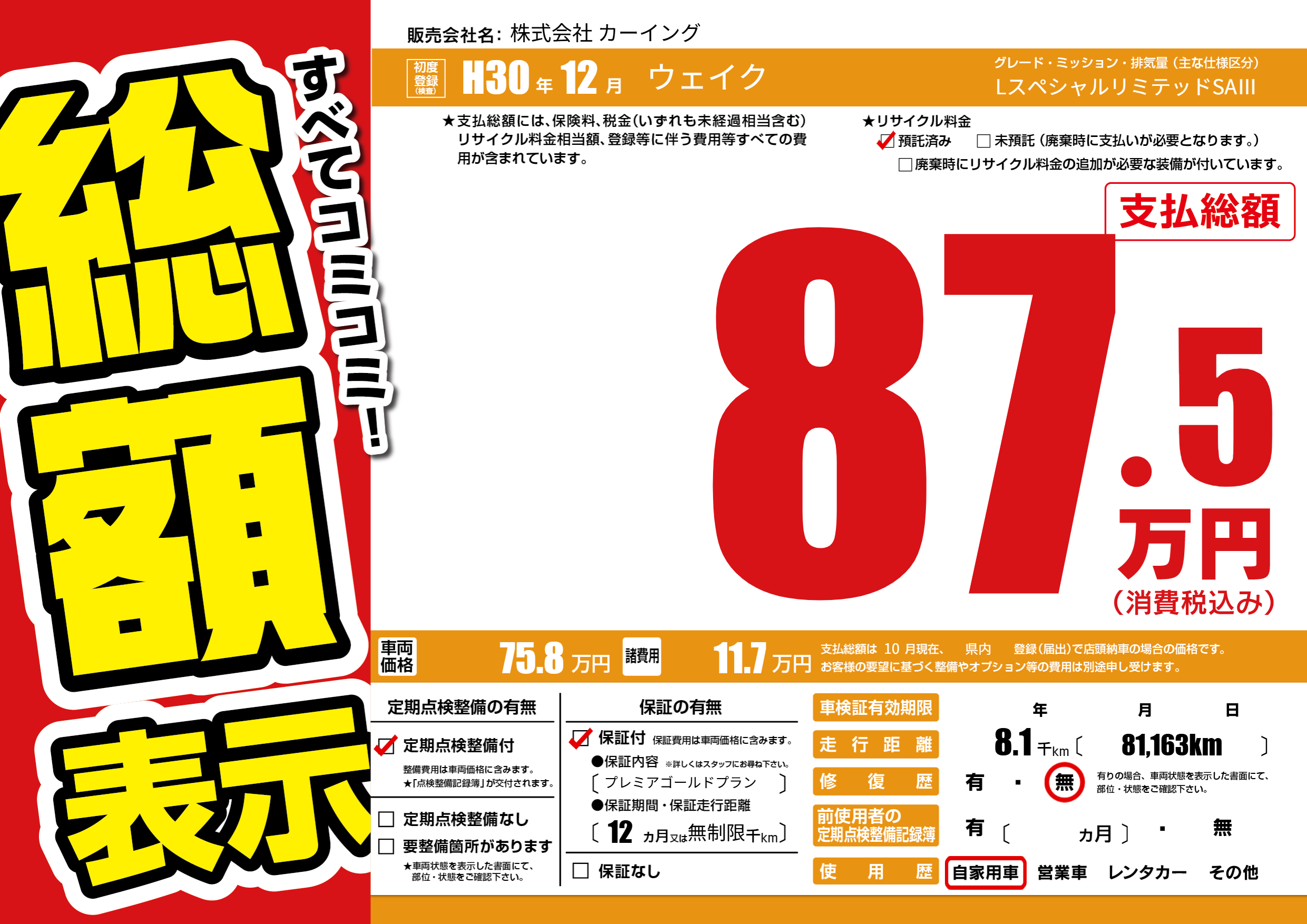| 定期点検整備 | 定期点検整備あり | ||