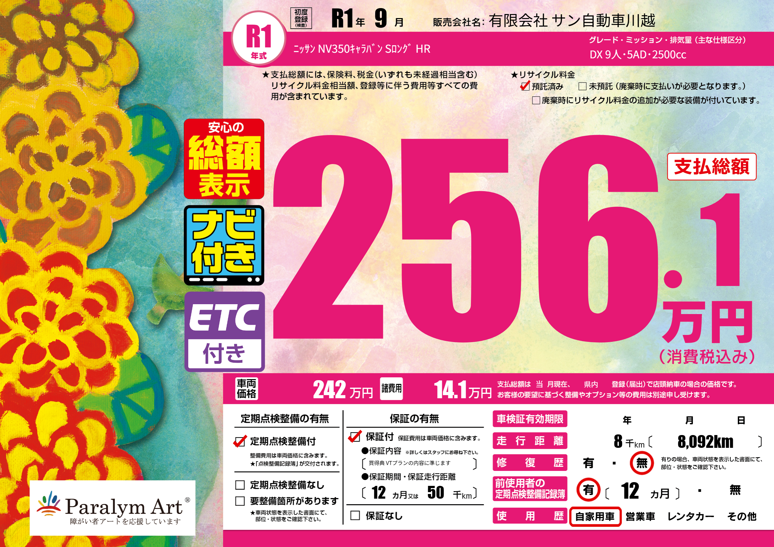 | 走行キロ | 0.8万km | 初年度登録 | R1年9月 |