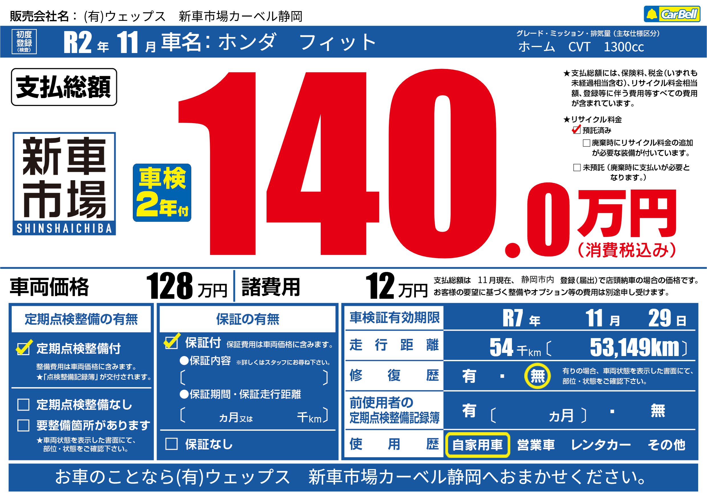 | 車検制限 | R7年 11月 29日 | ||