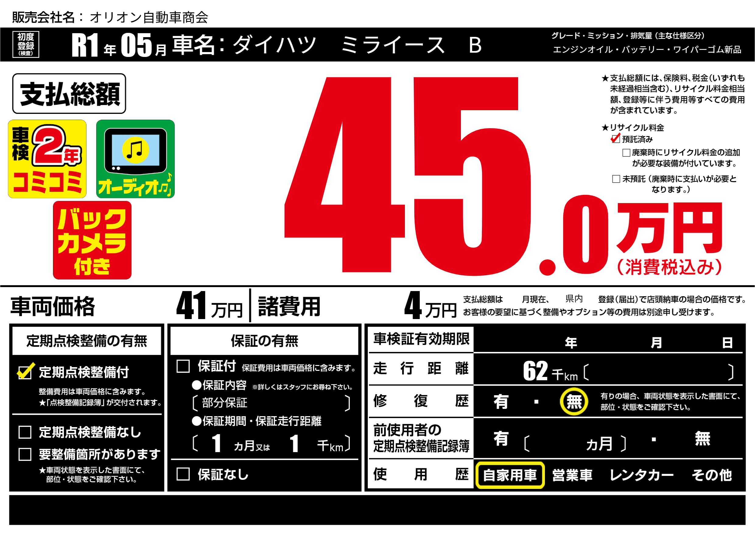 | 定期点検整備 | 定期点検整備あり | ||