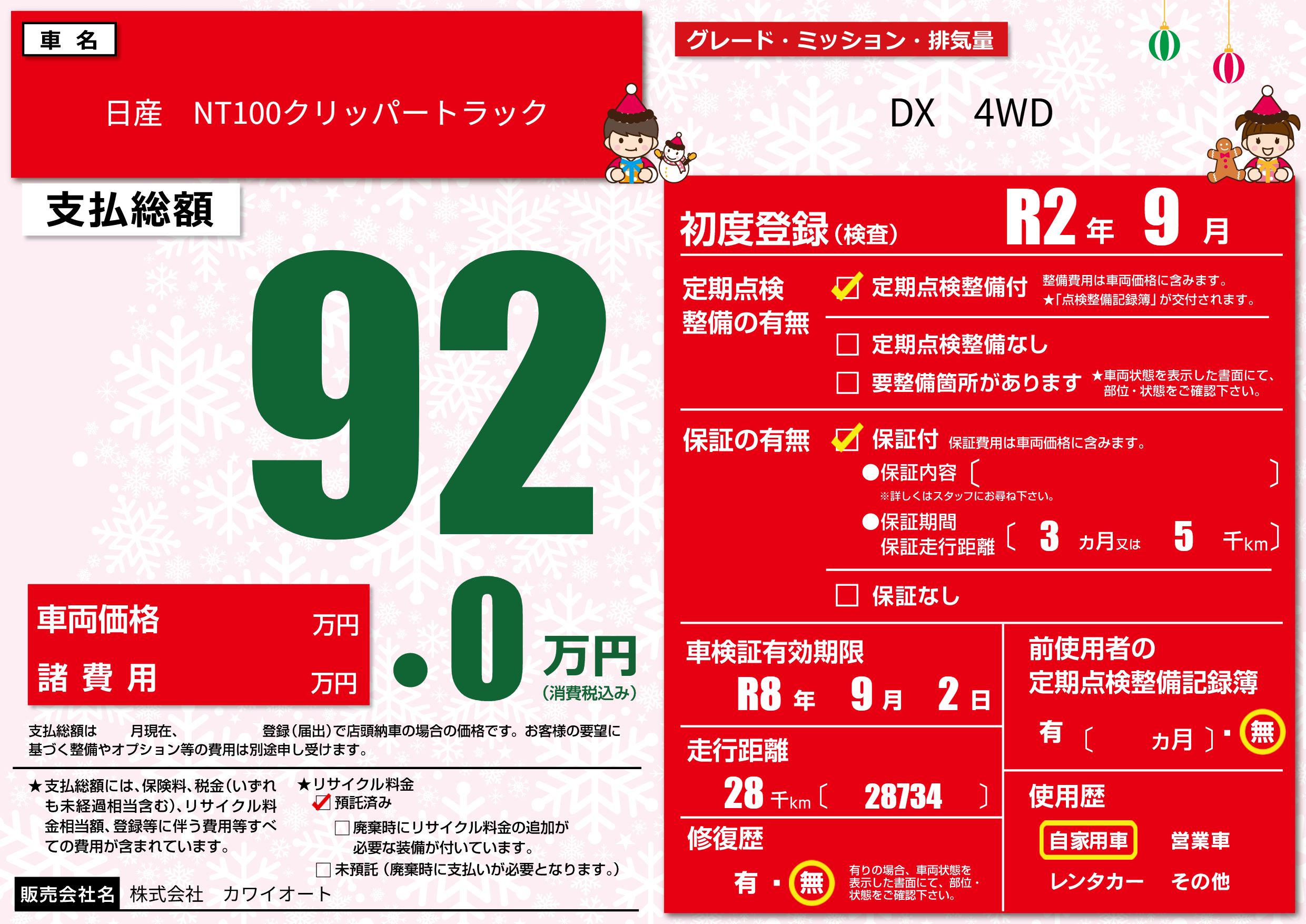 | 車検制限 | R8年 9月 2日 | ||