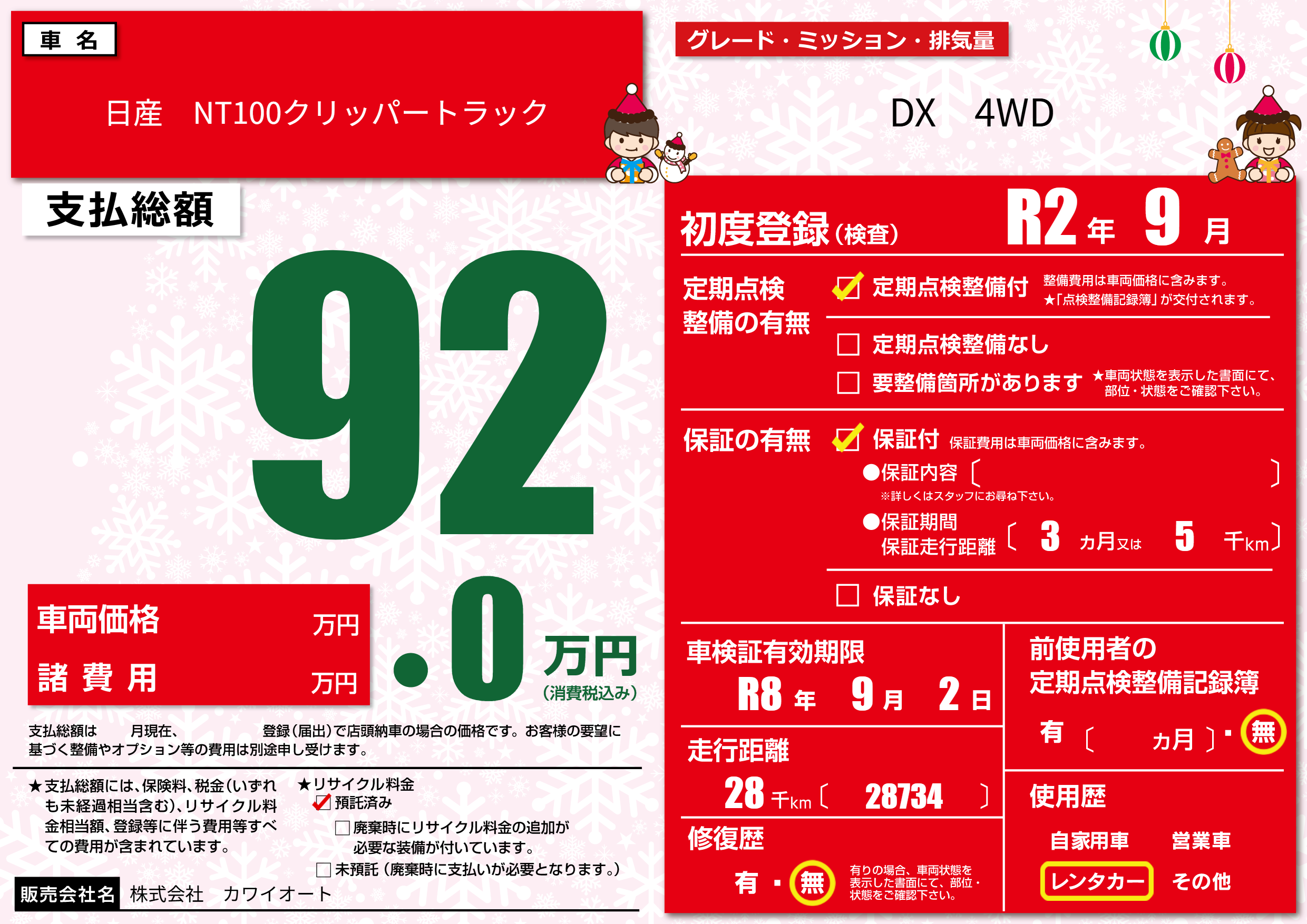 | 車名 | 日産 NT100クリッパートラック | グレード ミッション 排気量 |