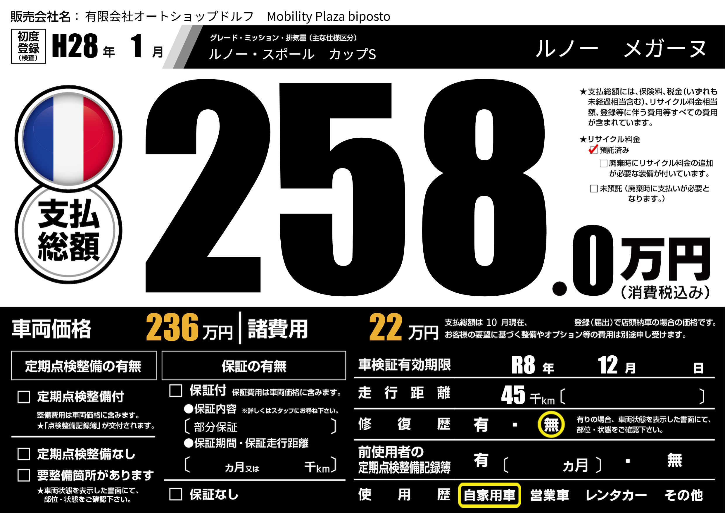| 走行キロ | 4.5万km | ||