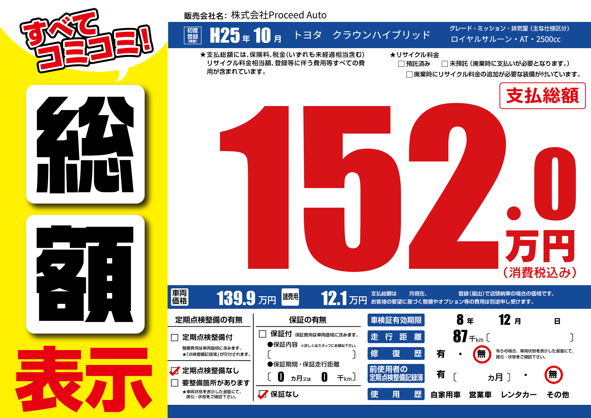 | 車名 | トヨタ クラウンハイブリッド | グレード ミッション 排気量 |