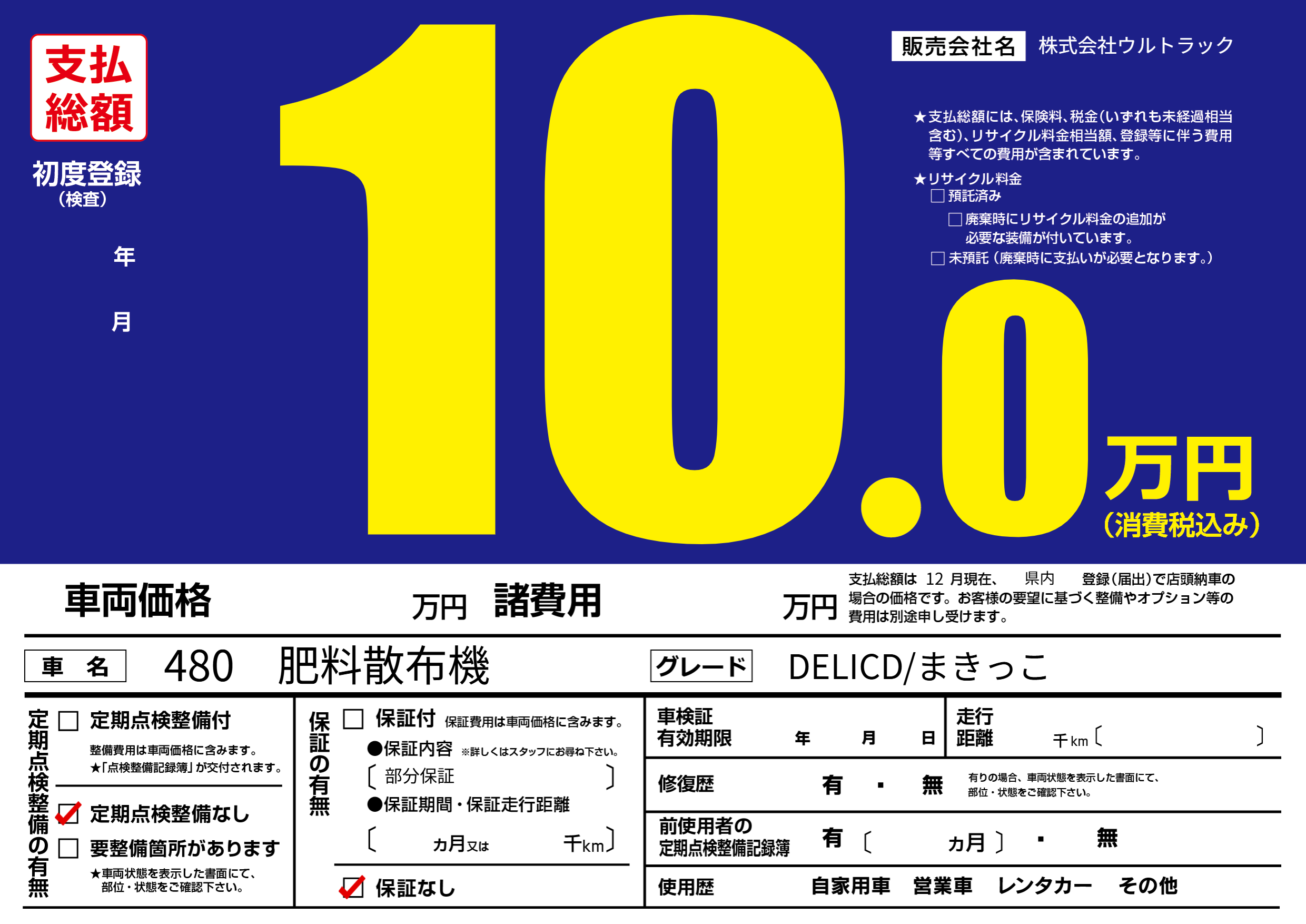 保証なし 保証内容(部分保証) ---ヶ月または()千kmまで |