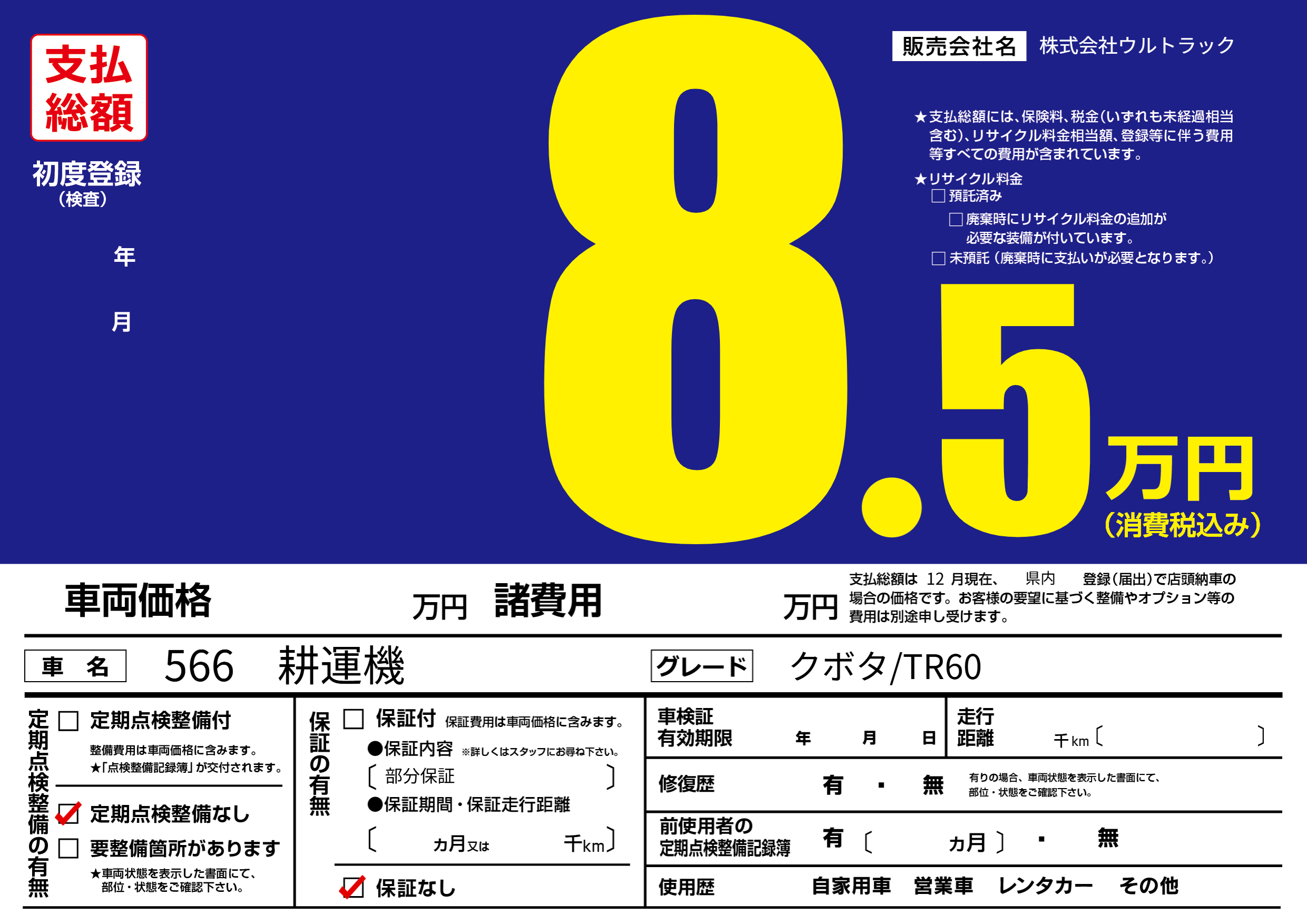 保証なし 保証内容(部分保証) ---ヶ月または()千kmまで |