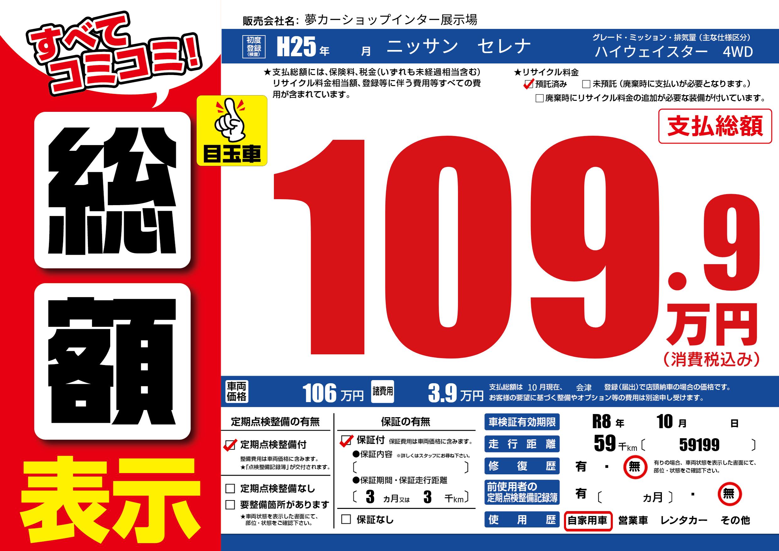 | 車検制限 | R8年 10月 - 日 | ||