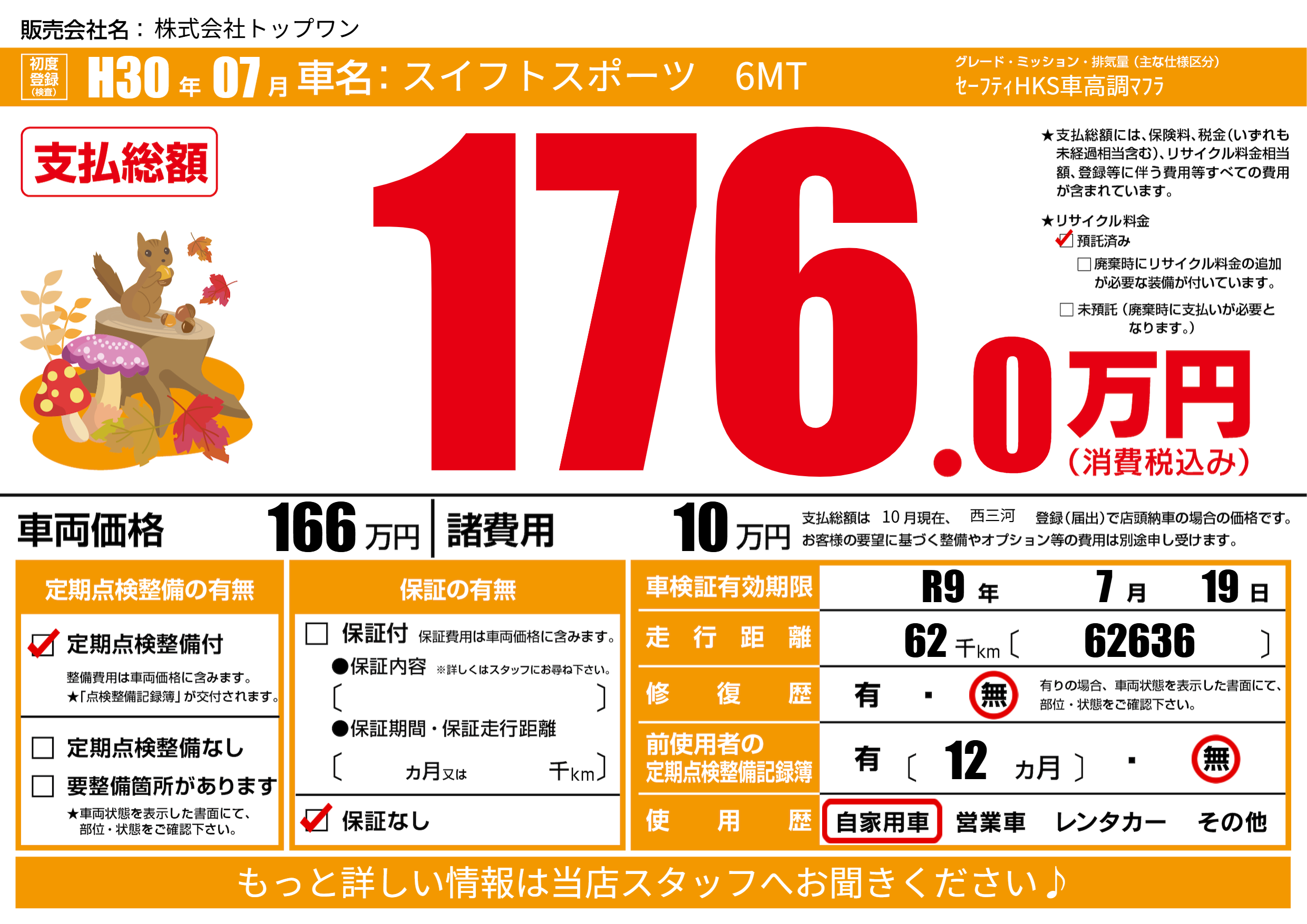 なし | 車検制限 | R9年7月19月 |