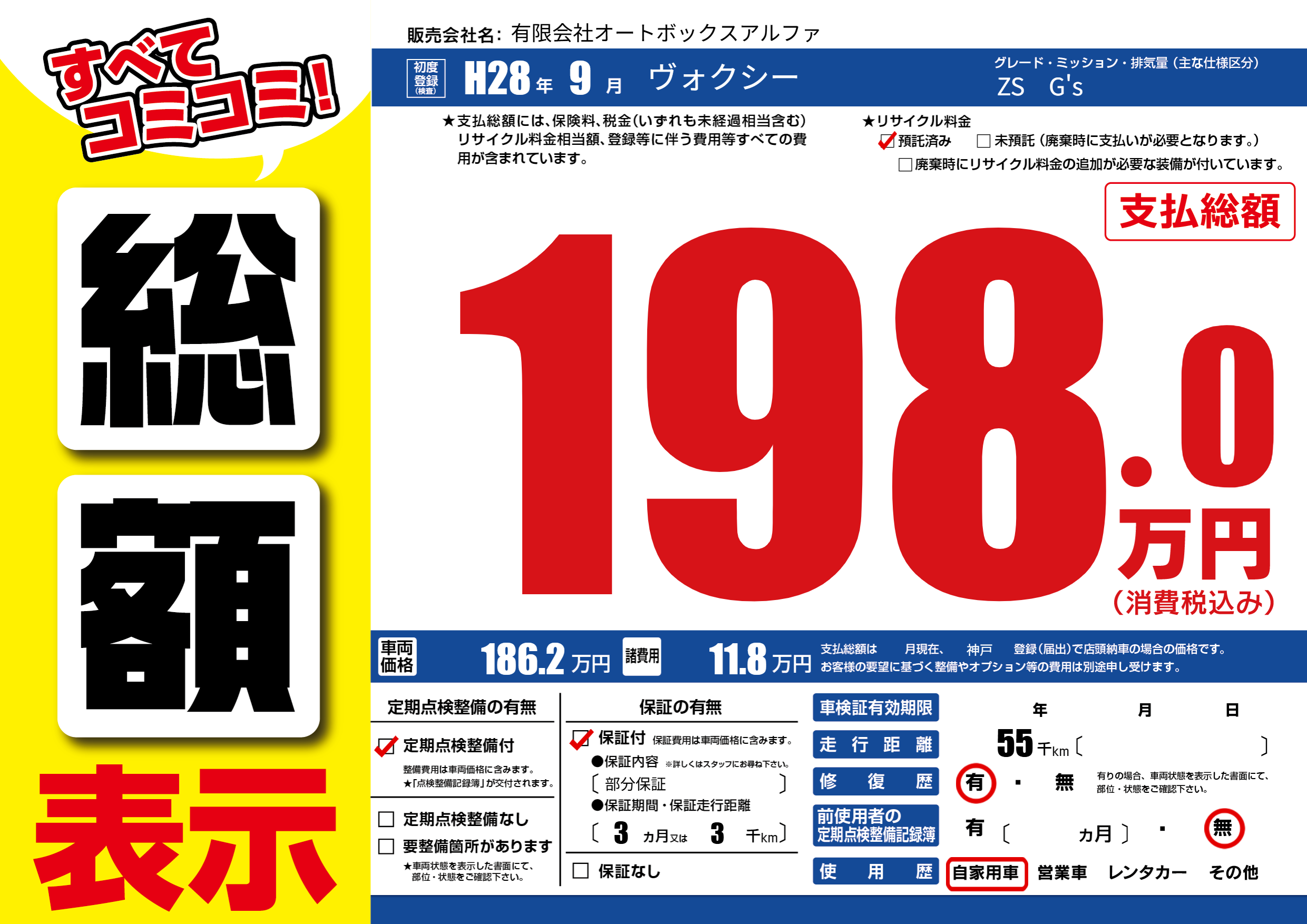 | 走行キロ | 5.5万km | 初年度登録 | H28年9月 |
