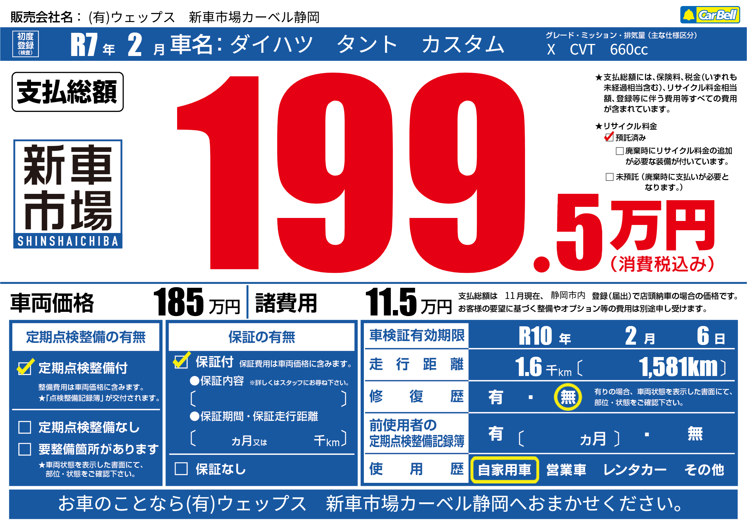 | 車検制限 | R10年 2月 6日 | ||