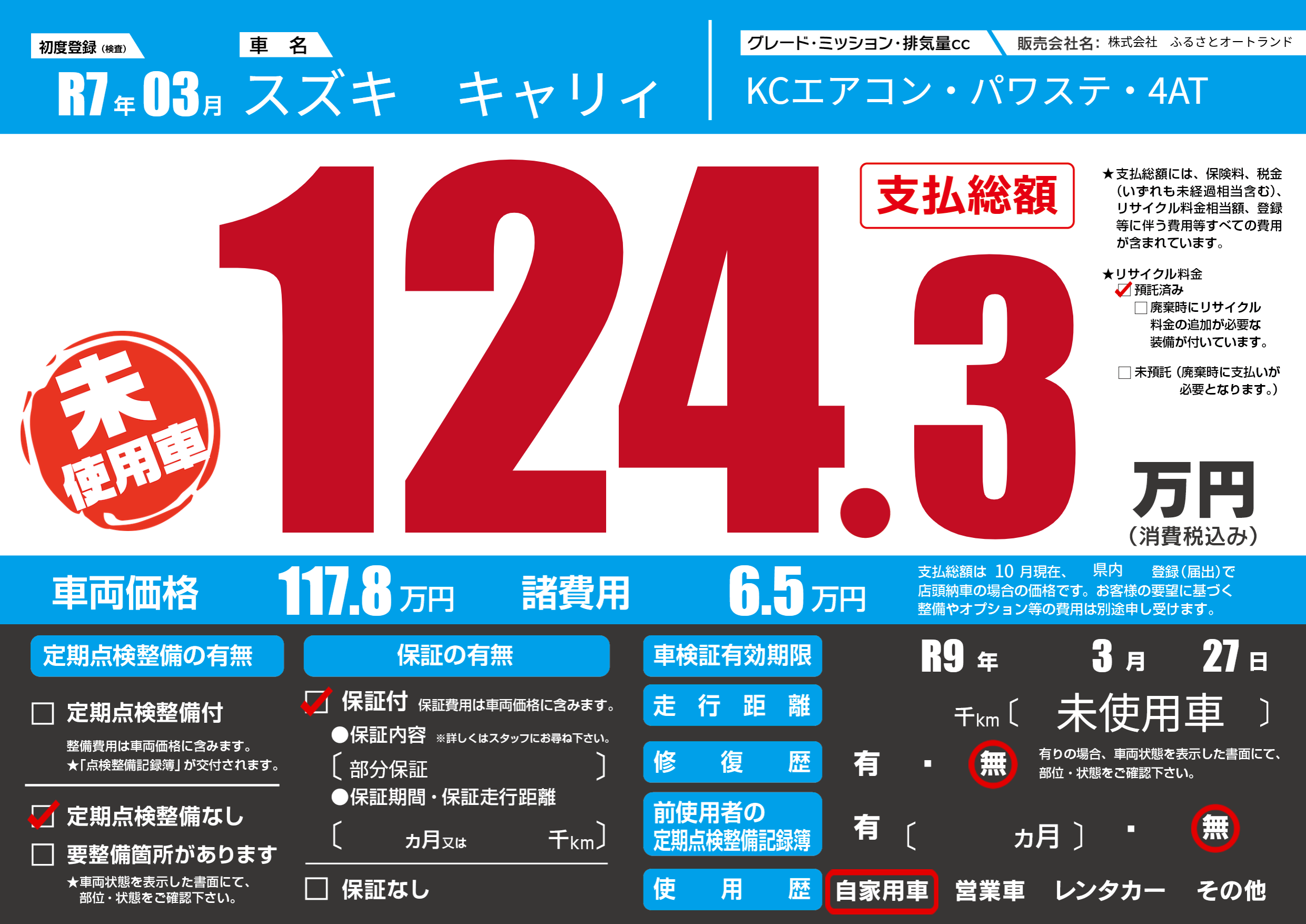 | 走行キロ | - | 初年度登録 | R7年03月 |