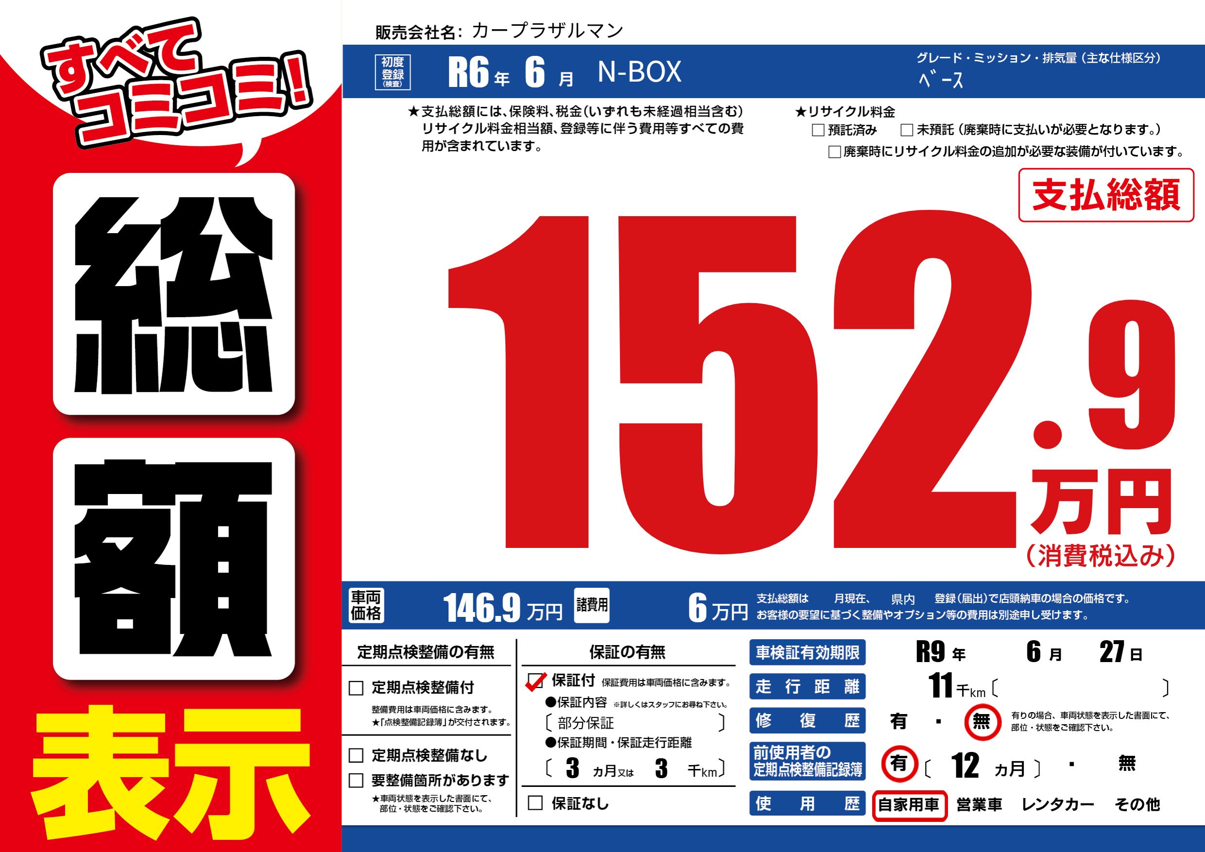 なし | 車検制限 | R9年6月27月 |