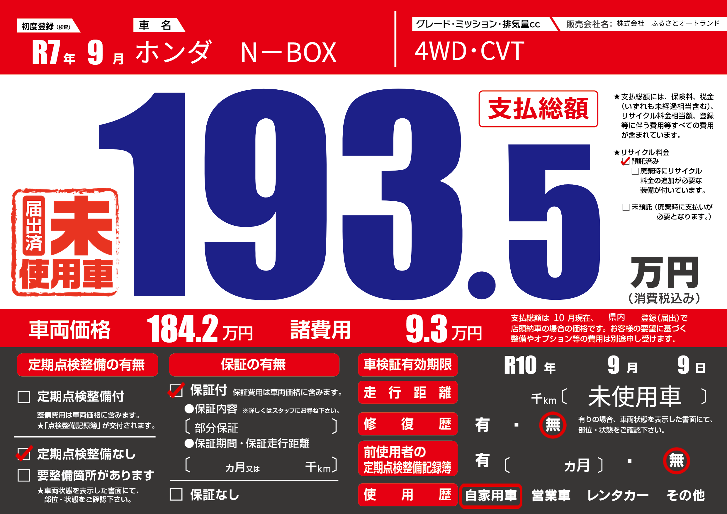 | 走行キロ | - | 初年度登録 | R7年9月 |