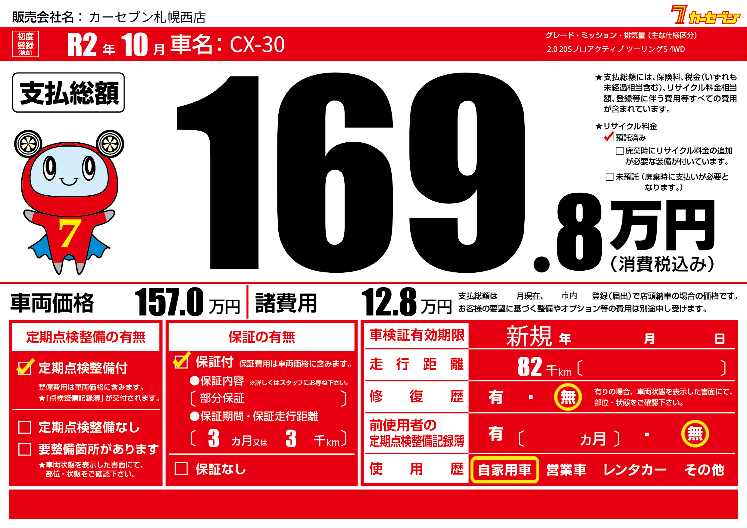 | 車名 | CX-30 | グレード ミッション 排気量 |