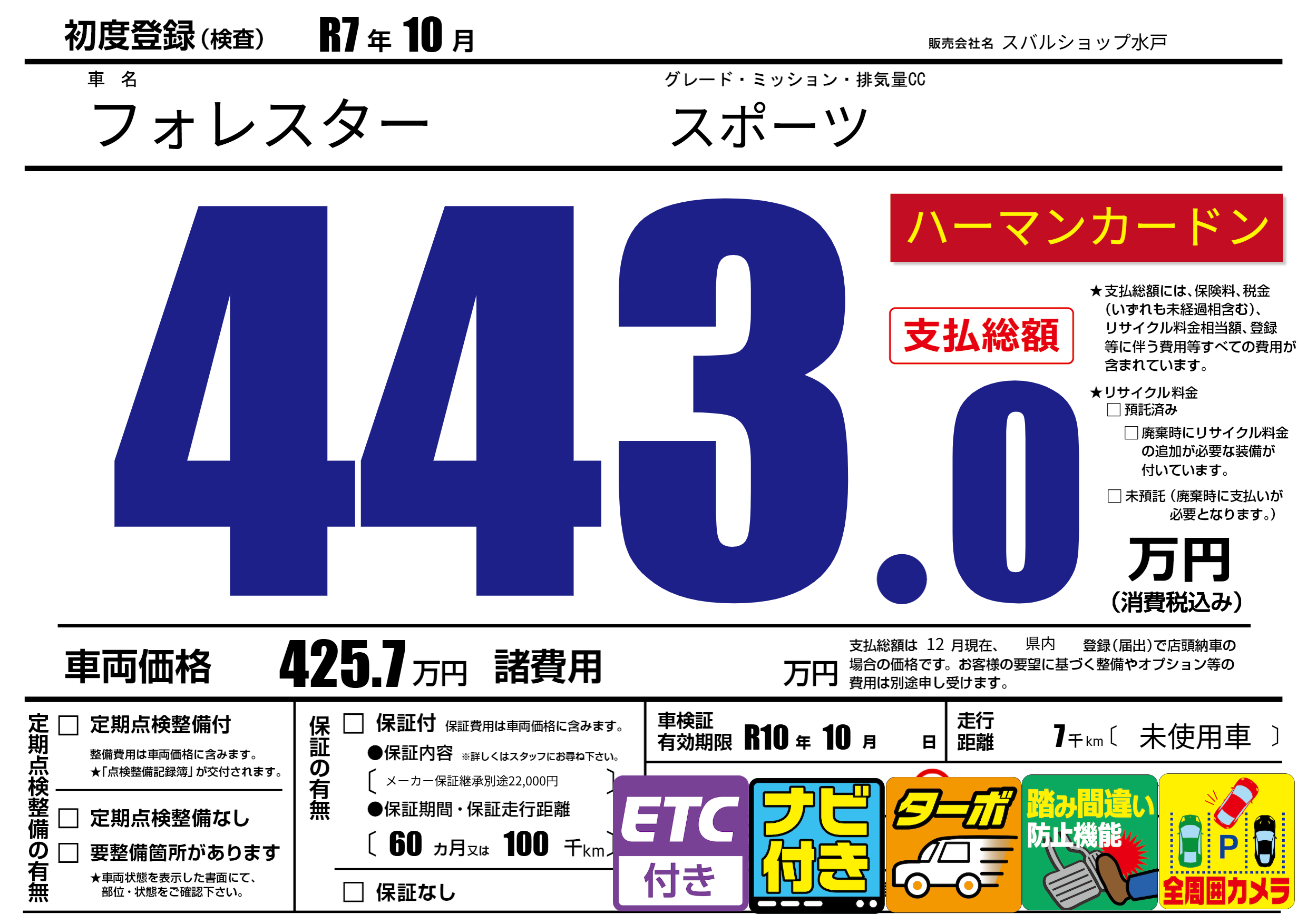 | 走行キロ | 0.7万km | 初年度登録 | R7年10月 |