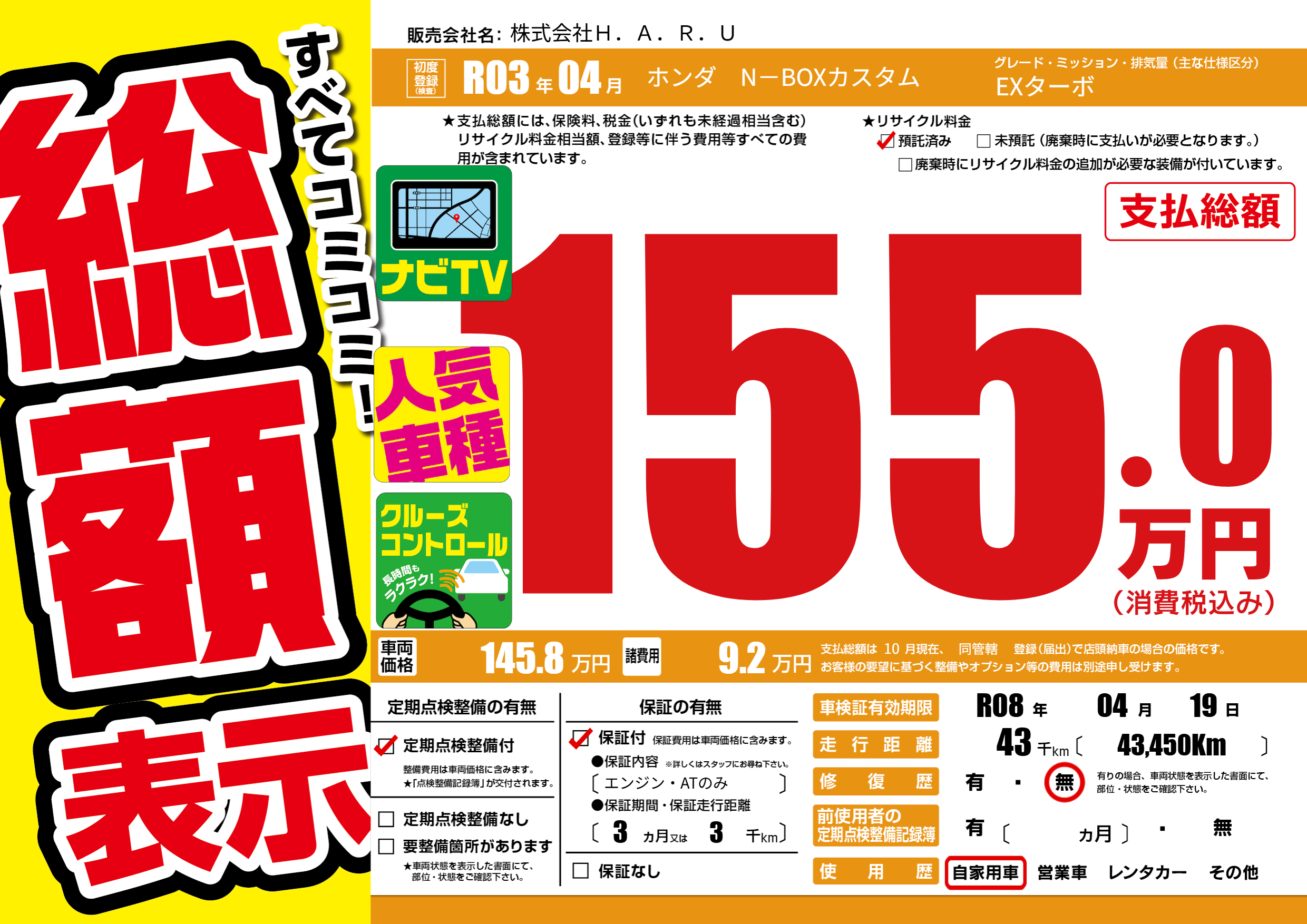 なし | 車検制限 | R08年04月19月 |