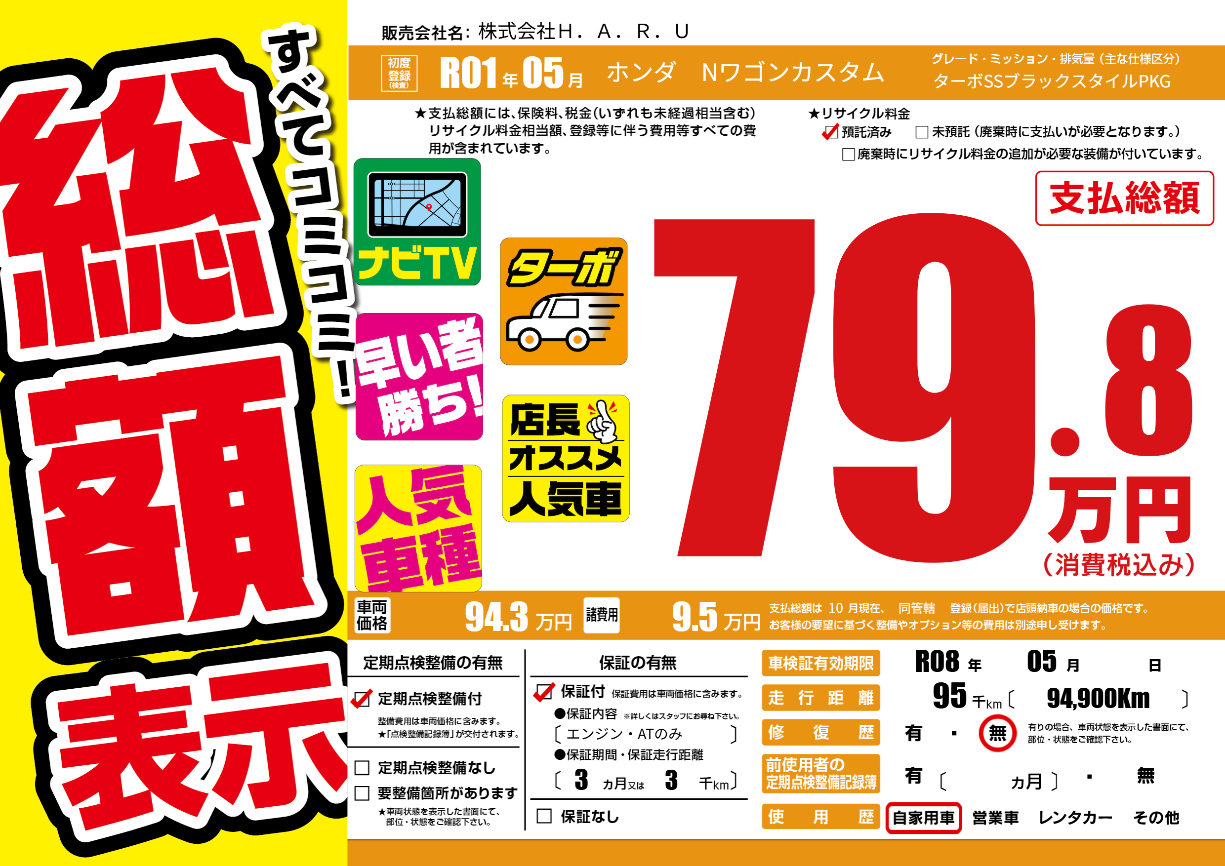 | 走行キロ | 9.5万km | ||