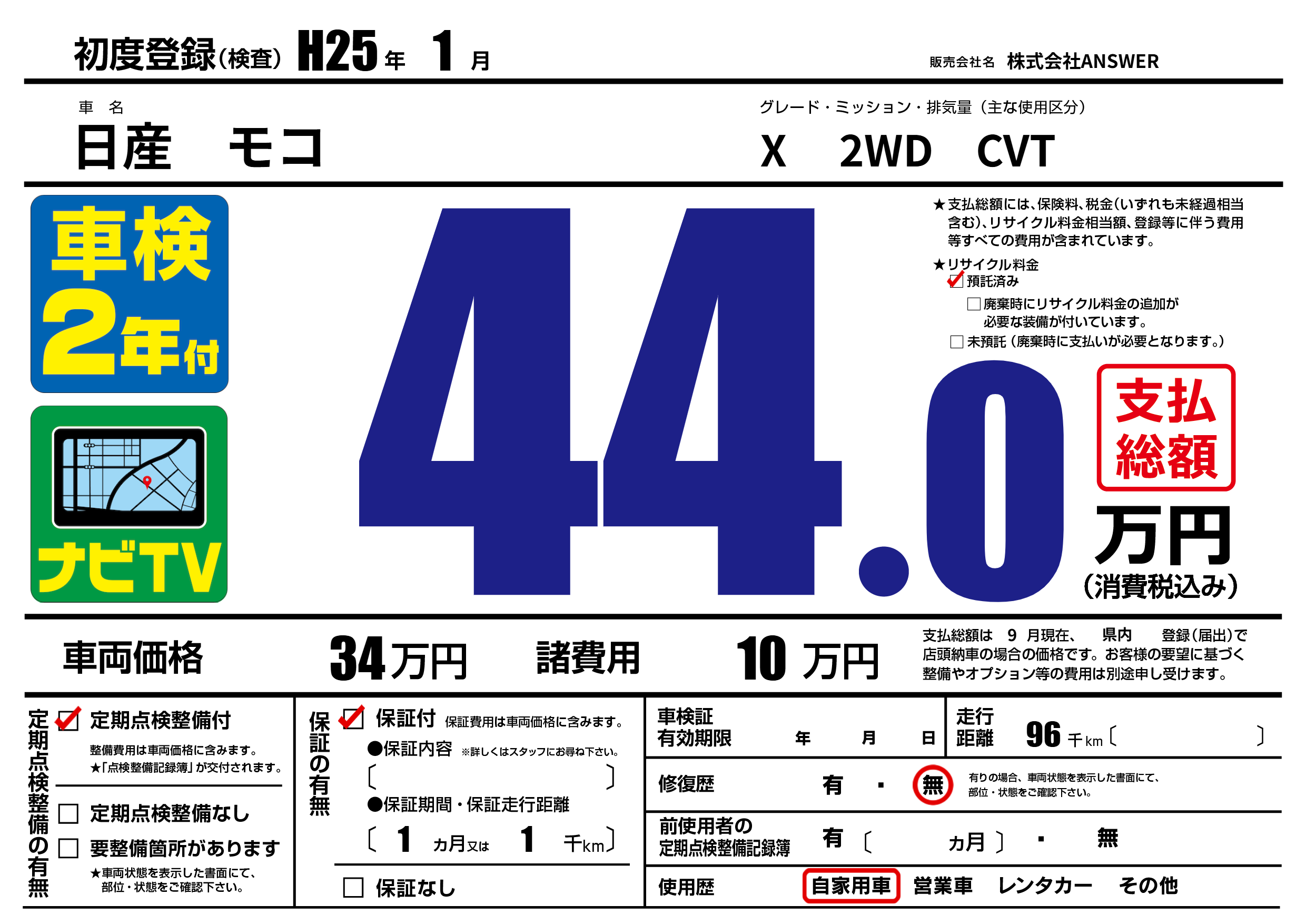 | 定期点検整備 | 定期点検整備あり | ||