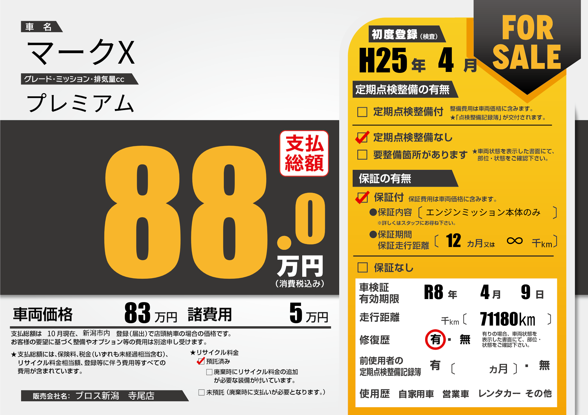 なし | 車検制限 | R8年4月9月 |