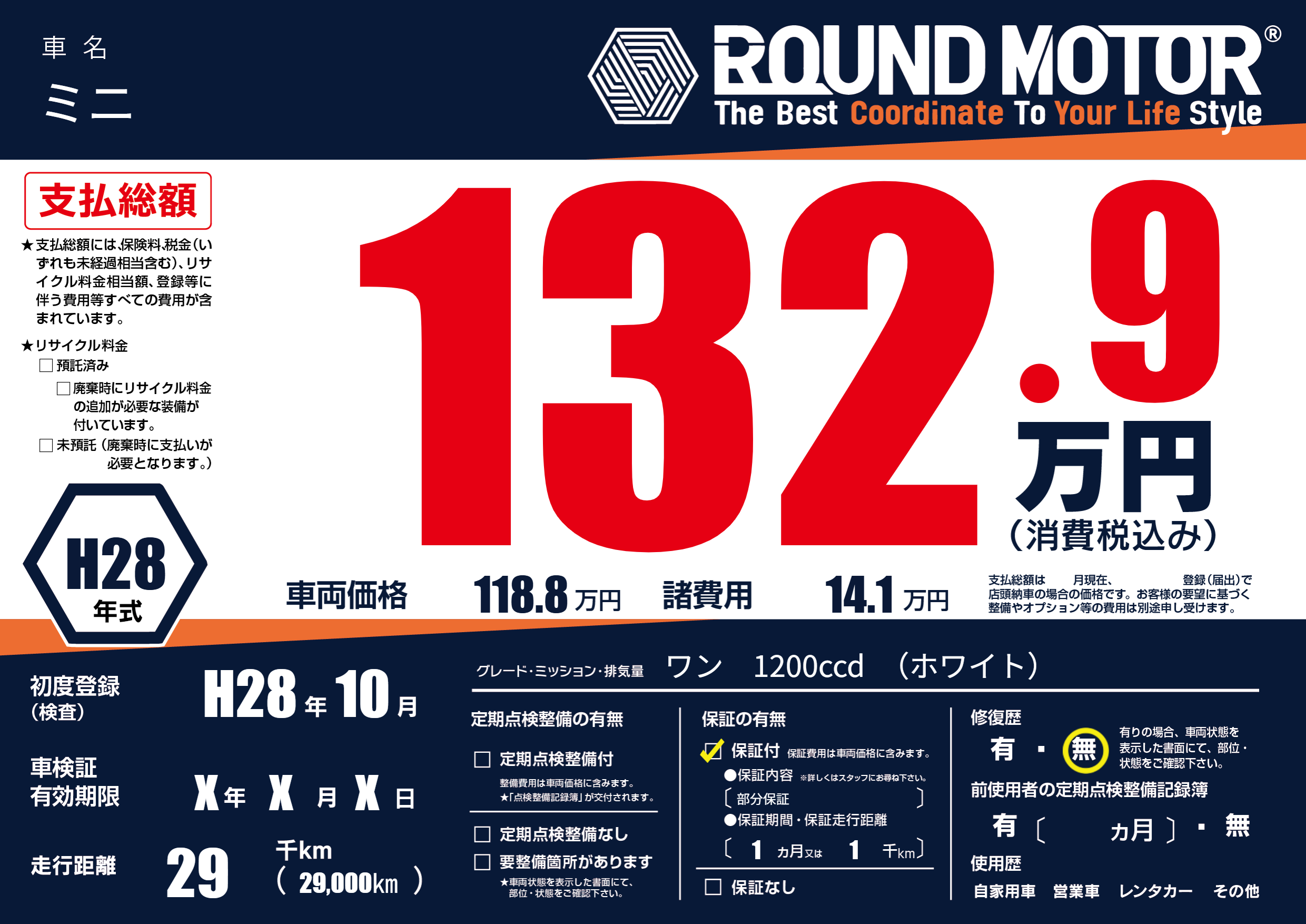 保証付き 保証内容(部分保証) 1ヶ月または(1)千kmまで |