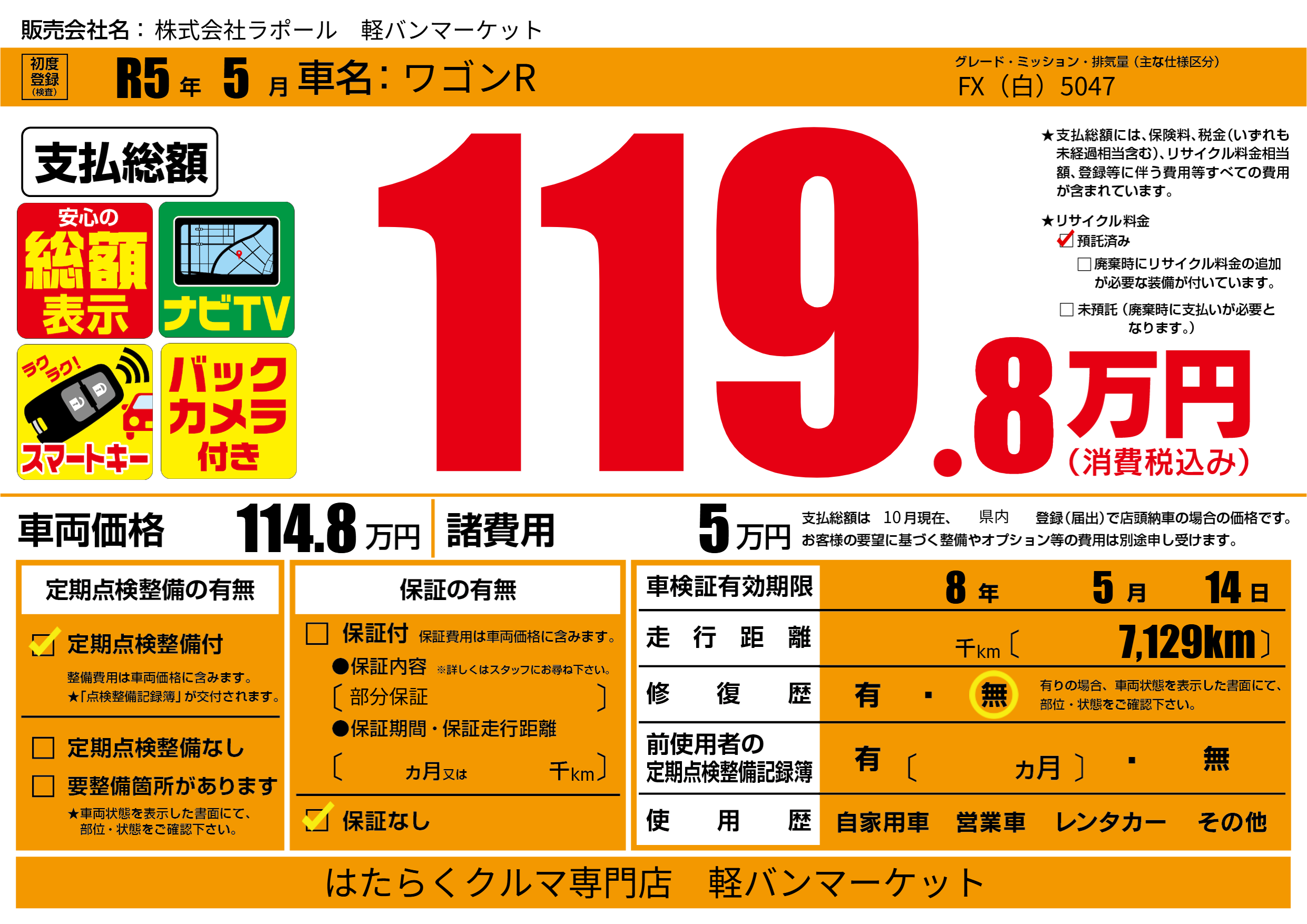 | 車検制限 | 8年 5月 14日 | ||