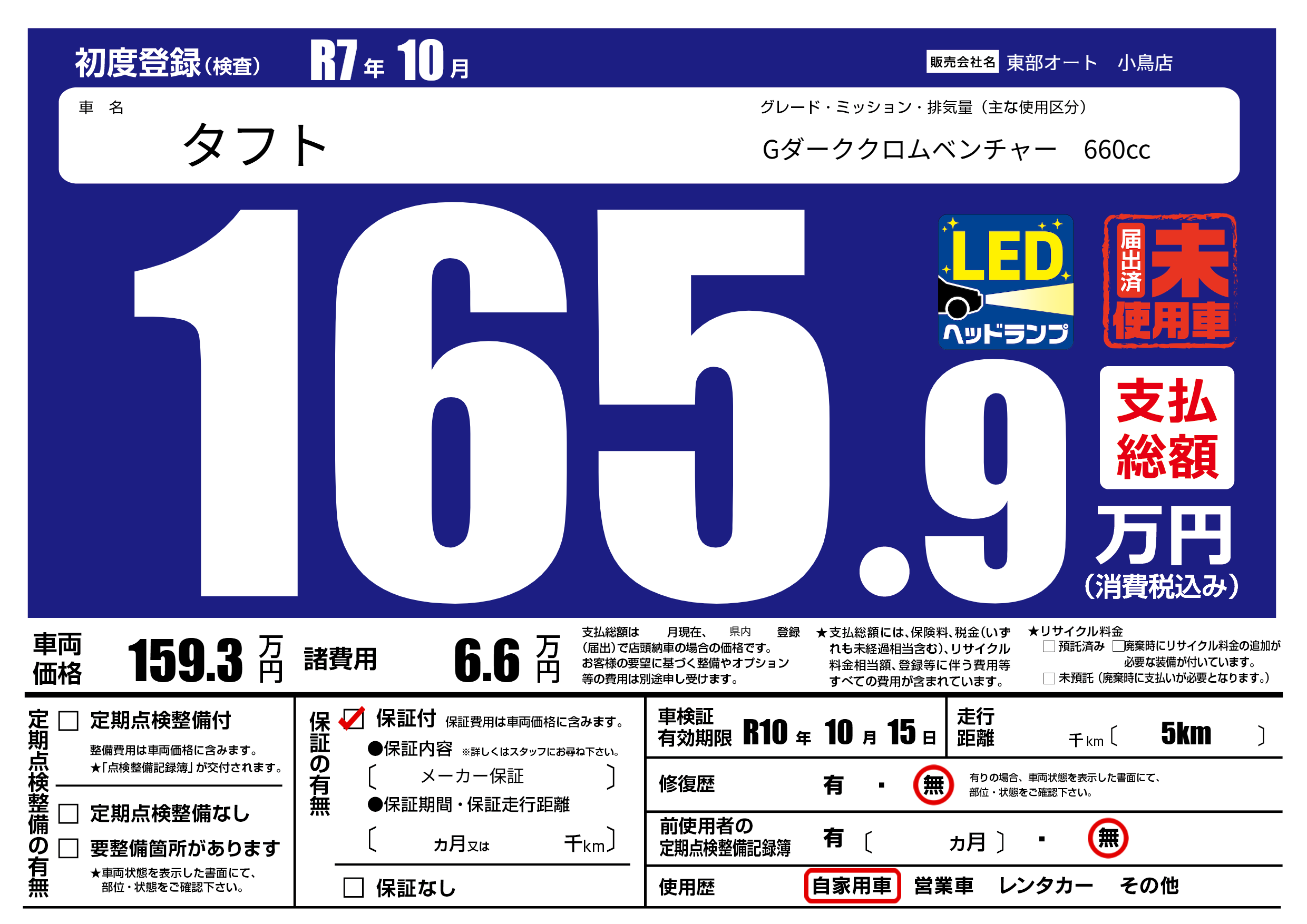 なし | 車検制限 | R10年10月15月 |