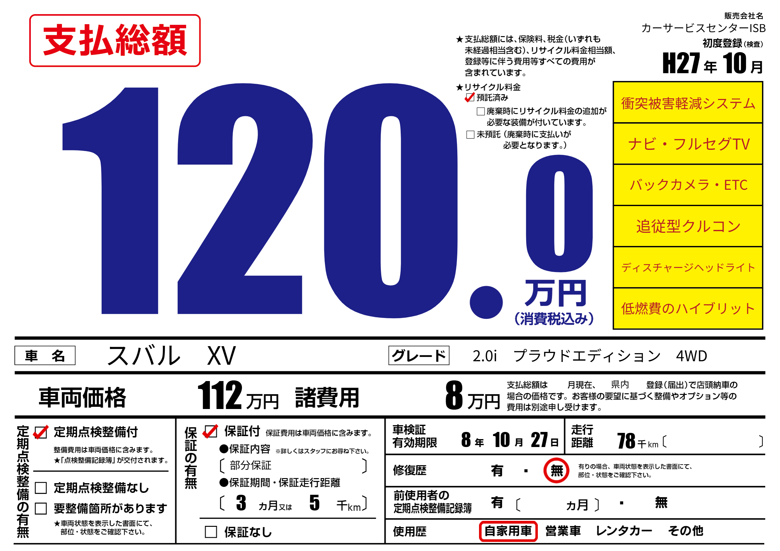 なし | 車検制限 | 8年10月27月 |