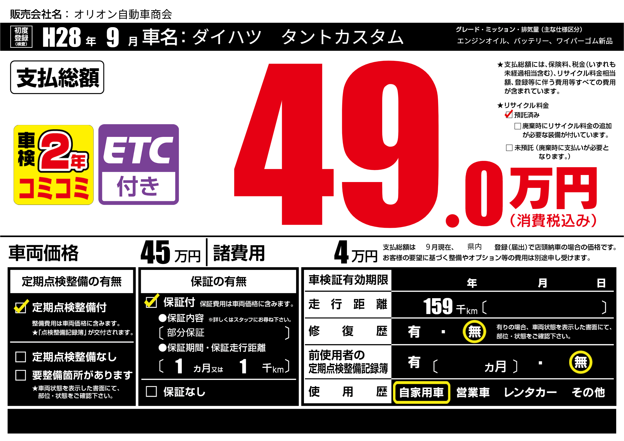 | 定期点検整備 | 定期点検整備あり | ||