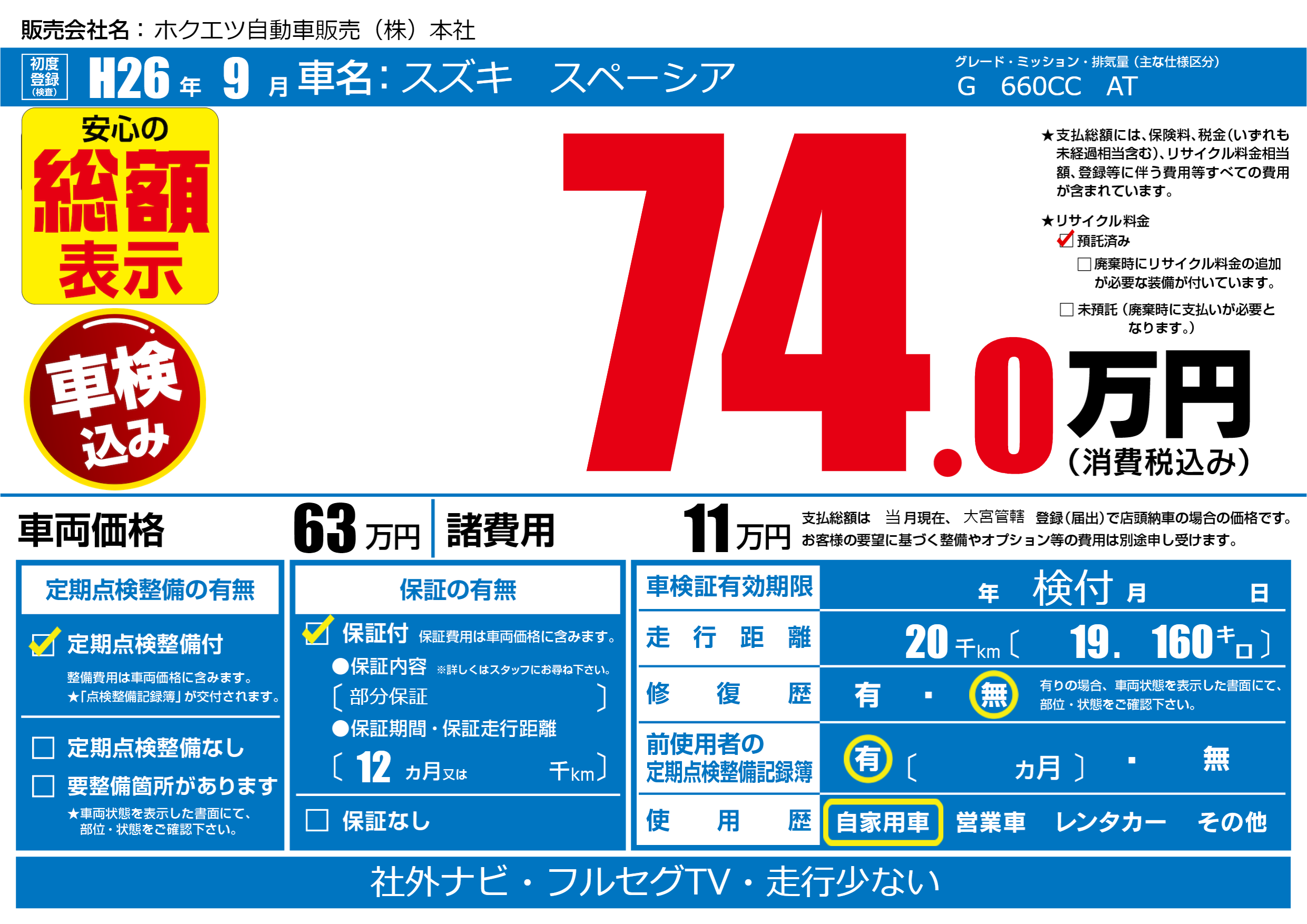 | 定期点検整備 | 定期点検整備あり | ||