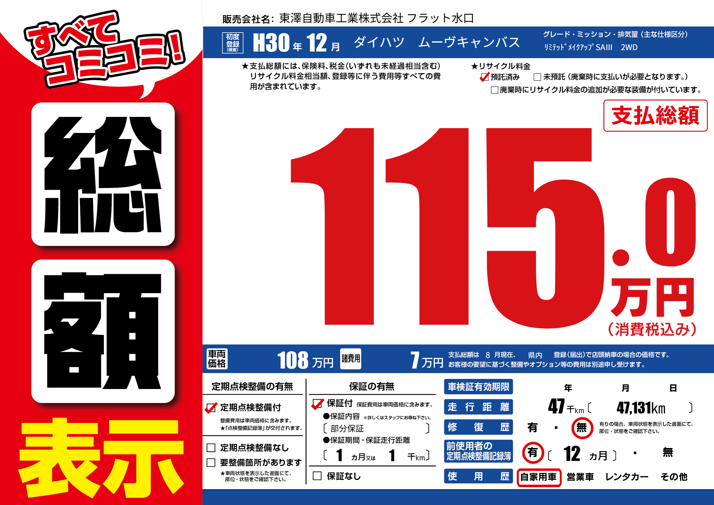 | 走行キロ | 4.7万km | ||