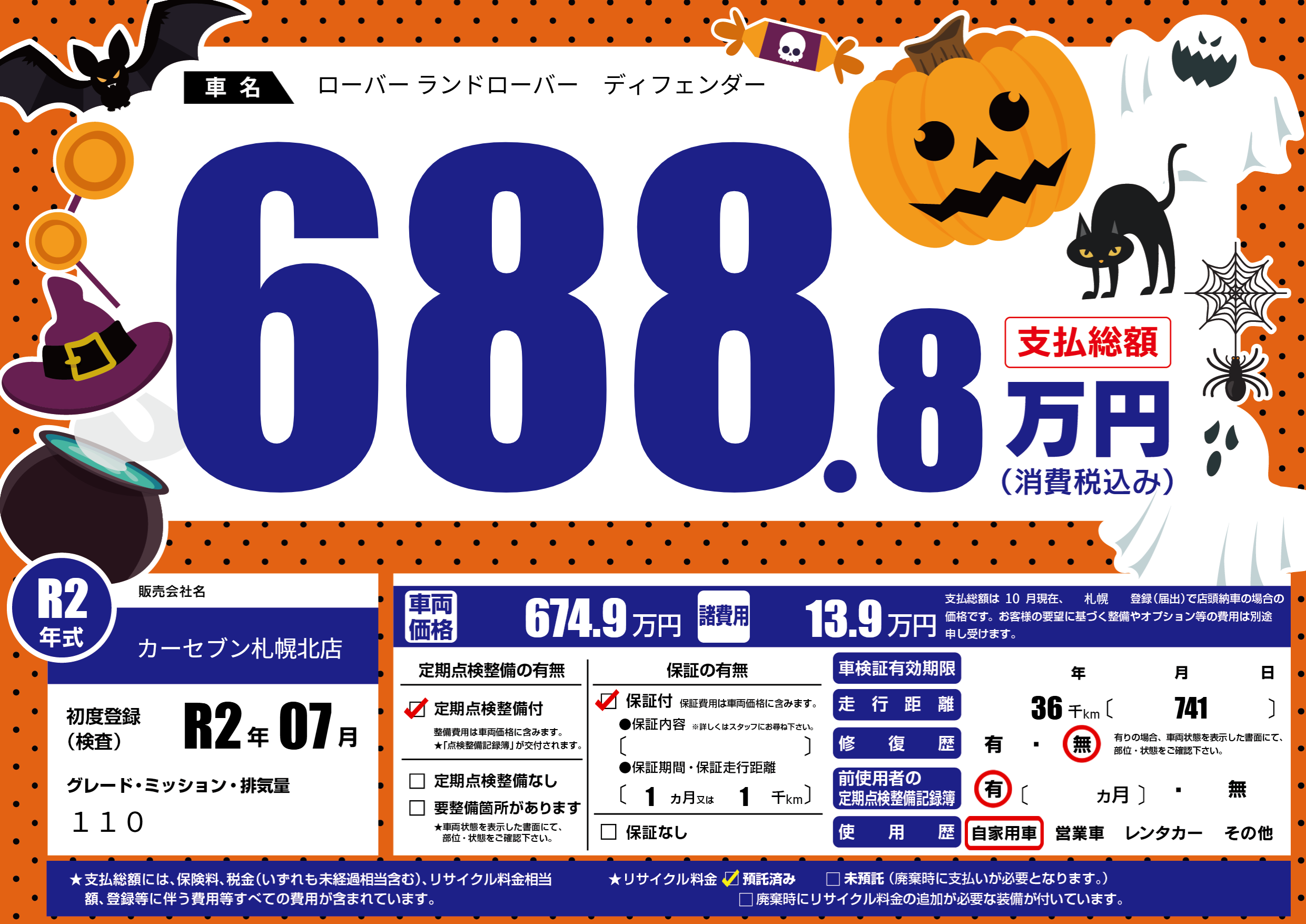 | 走行キロ | 3.6万km | 初年度登録 | R2年07月 |