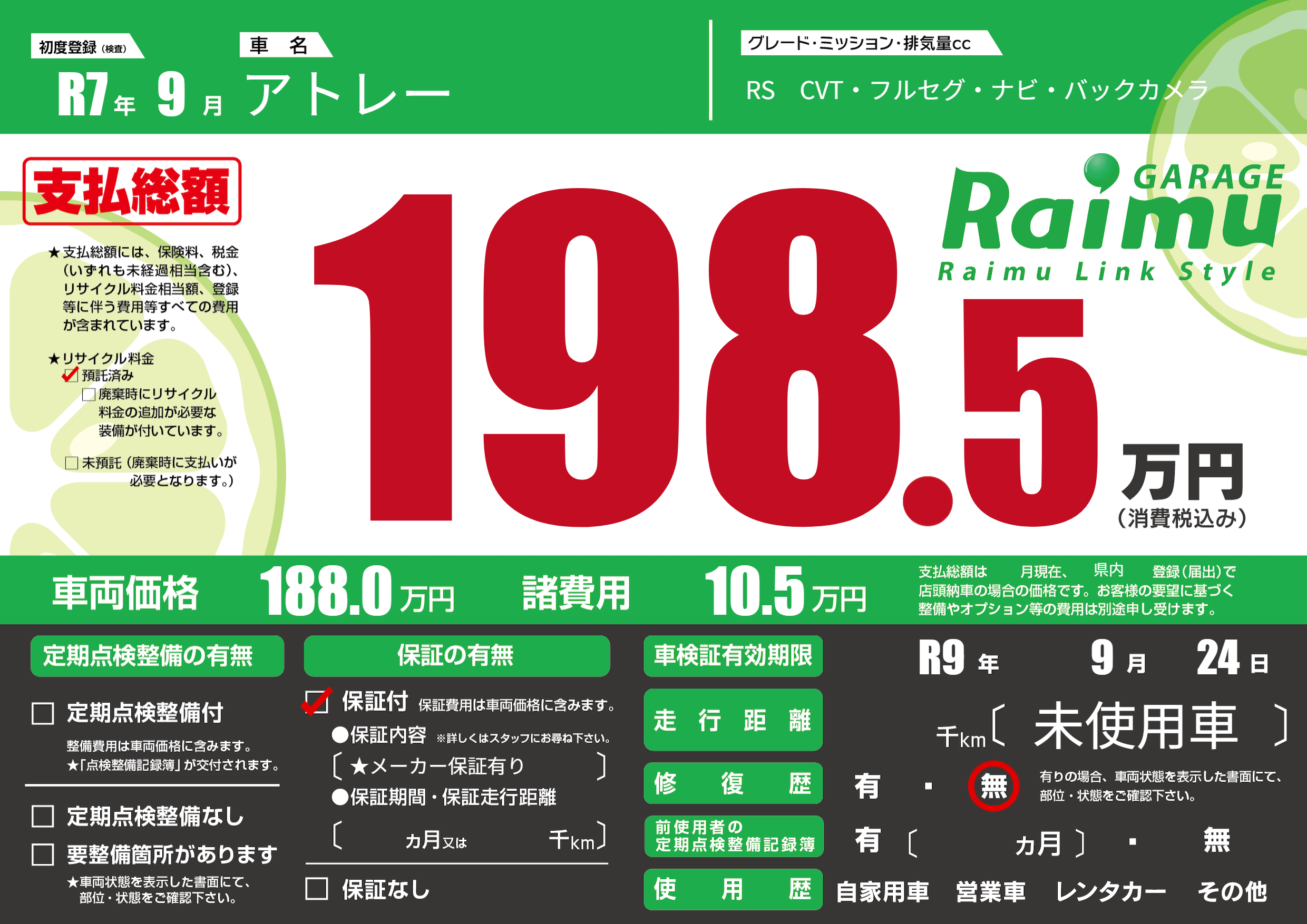 なし | 車検制限 | R9年9月24月 |