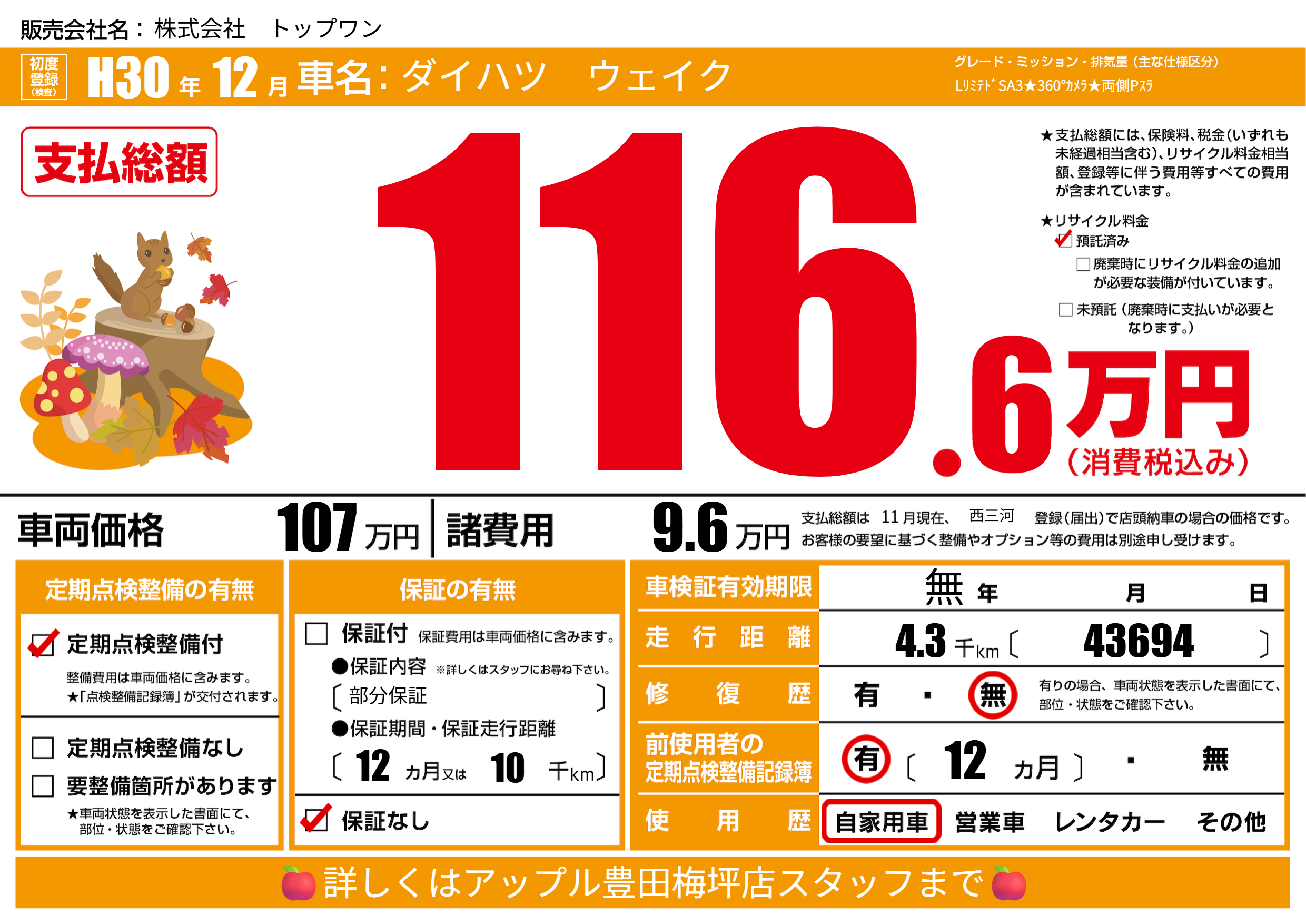 | 初年度登録 | H30年12月 | ||