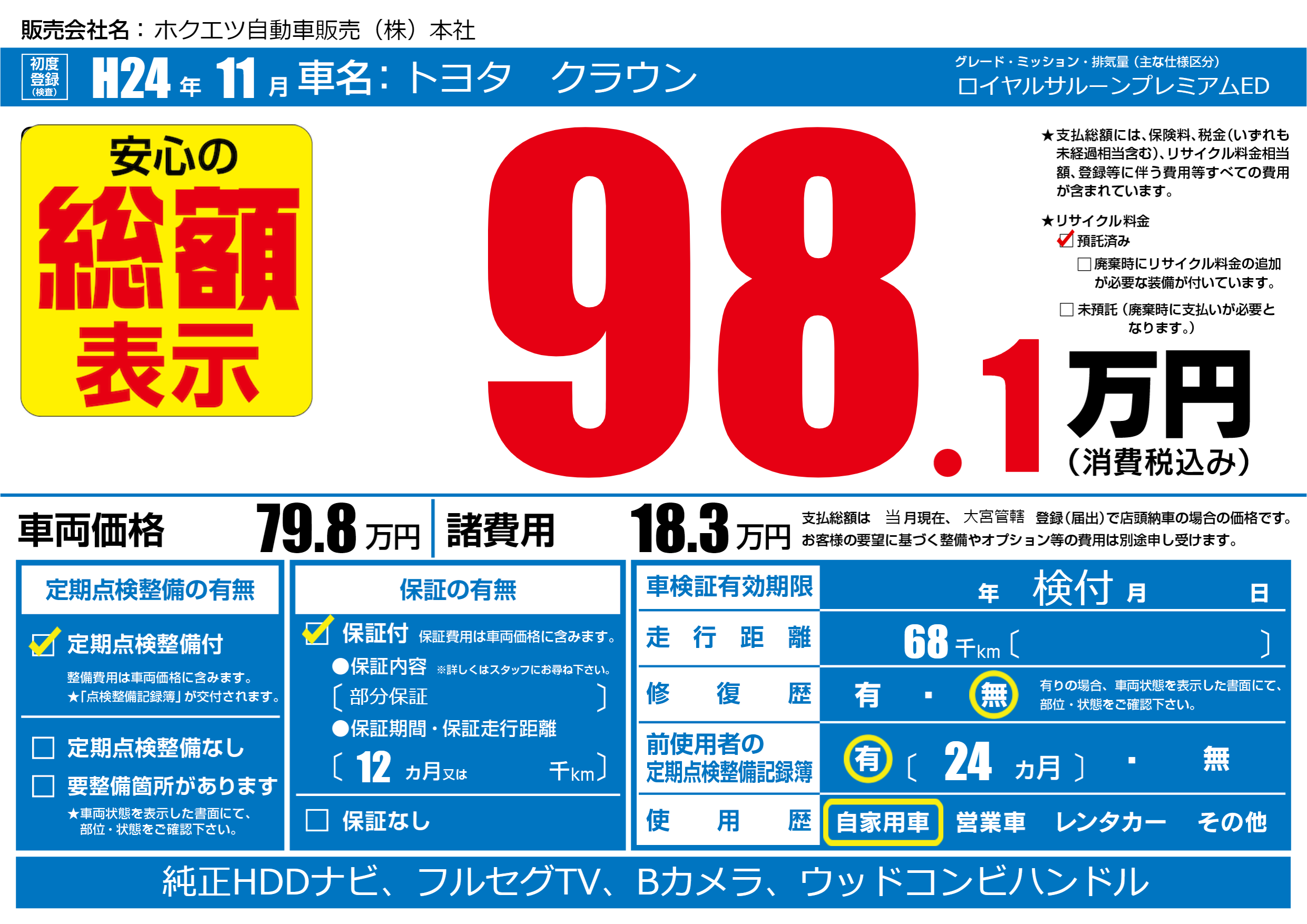 | 走行キロ | 6.8万km | ||
