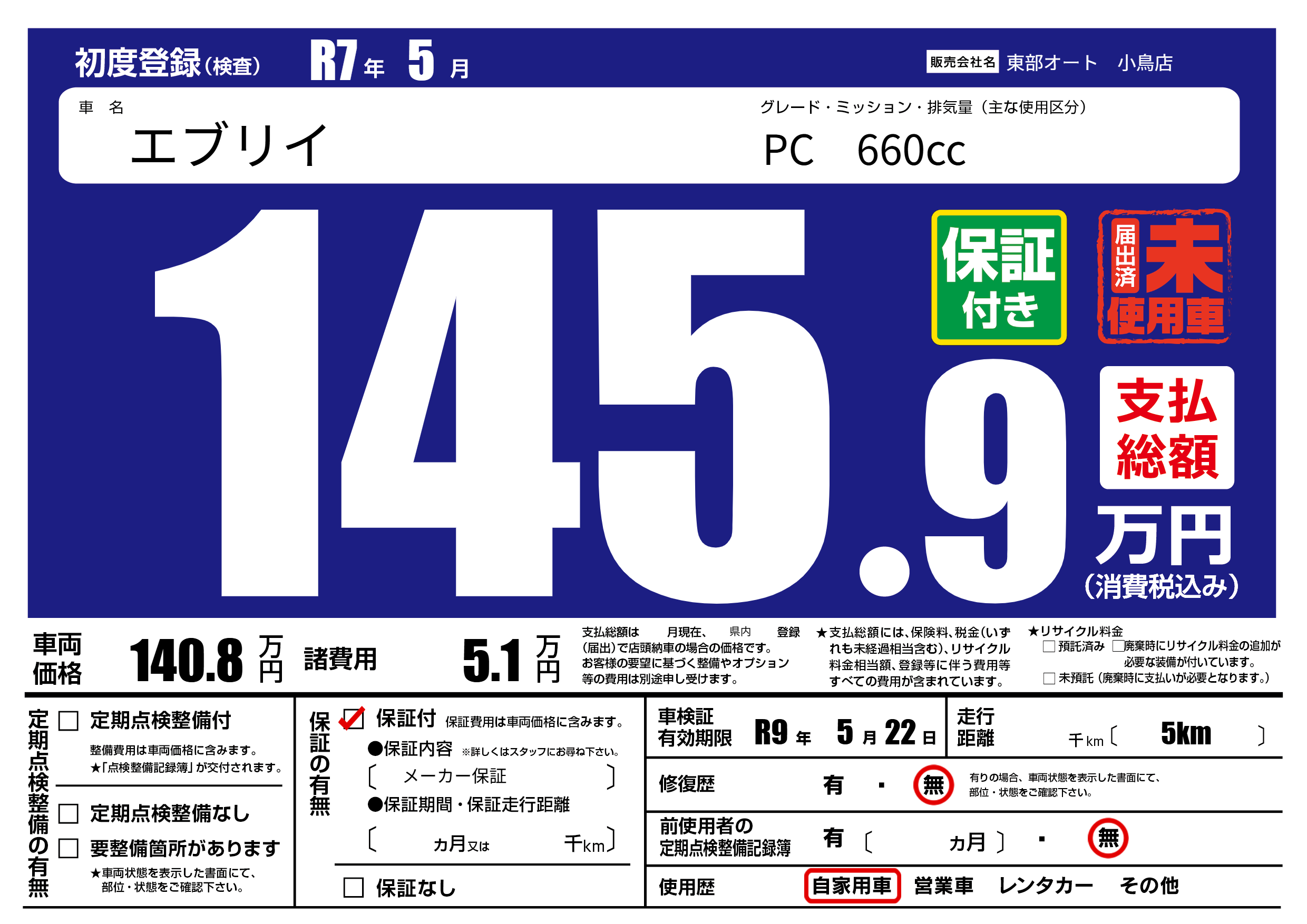 保証付き 保証内容( メーカー保証) ---ヶ月または()千kmまで |