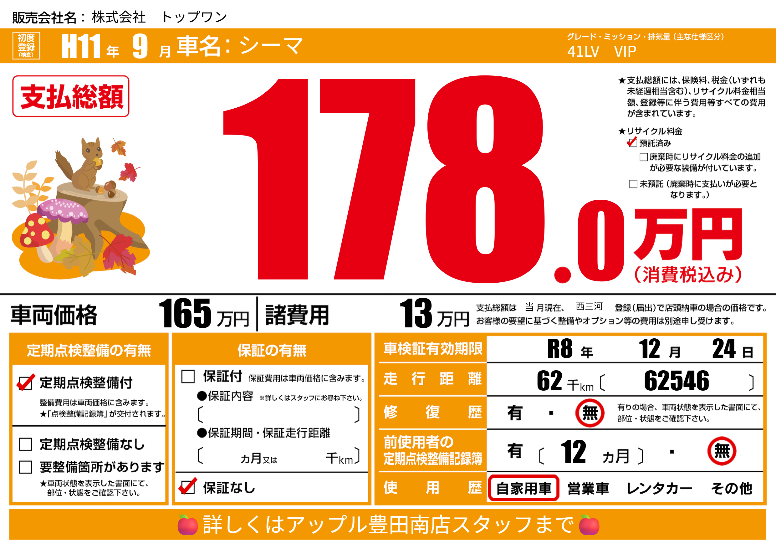 なし | 車検制限 | R8年12月24月 |