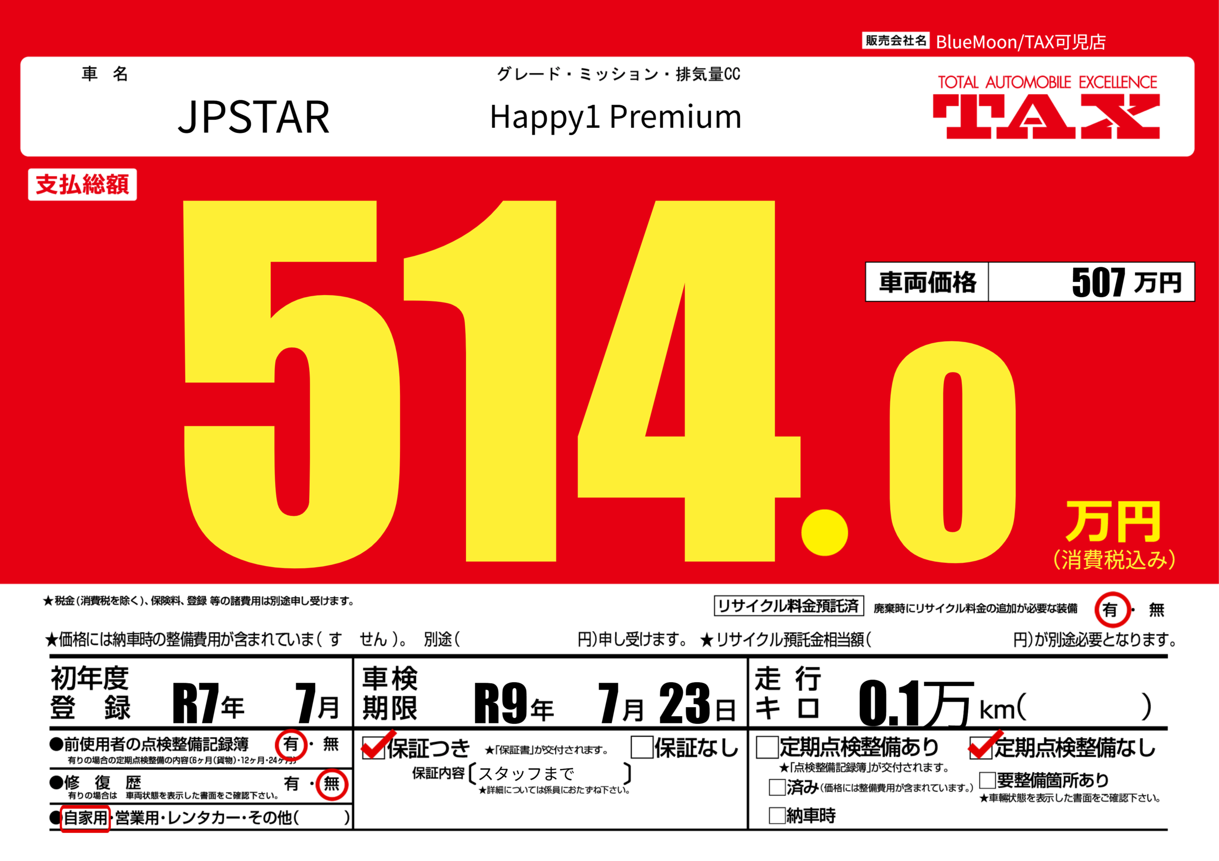 | 走行キロ | - | 初年度登録 | R7年7月 |
