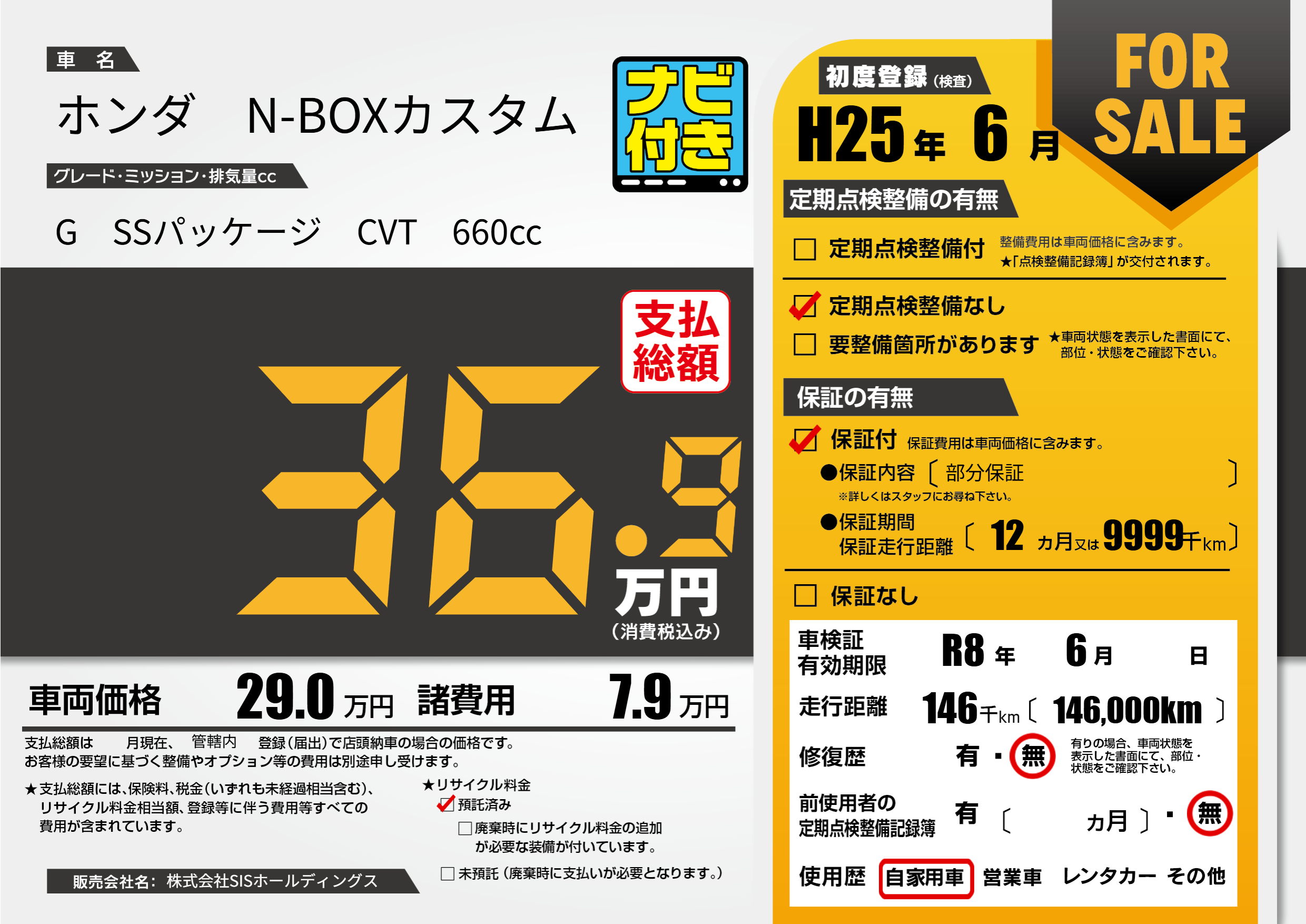 なし | 車検制限 | R8年6月---月 |