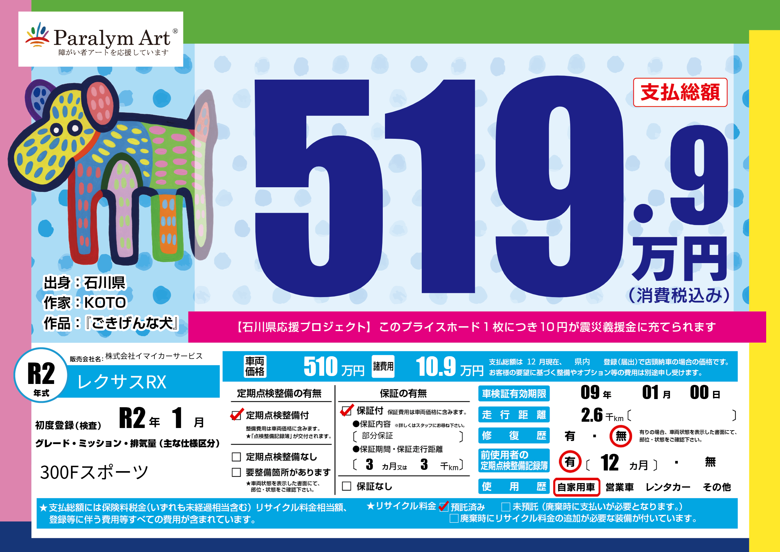 | 走行キロ | 0.2万km | 初年度登録 | R2年1月 |
