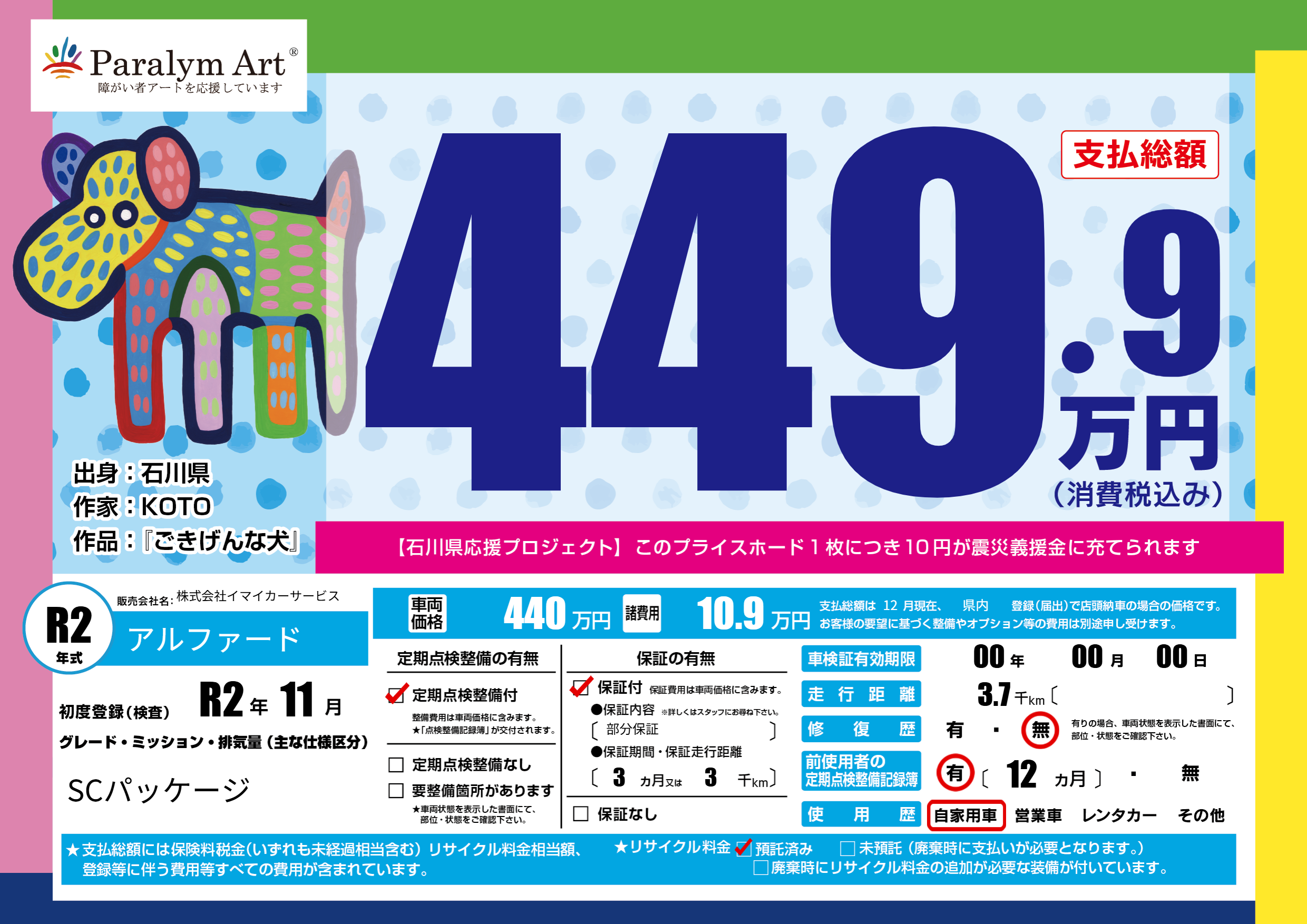 | 走行キロ | 0.3万km | 初年度登録 | R2年11月 |